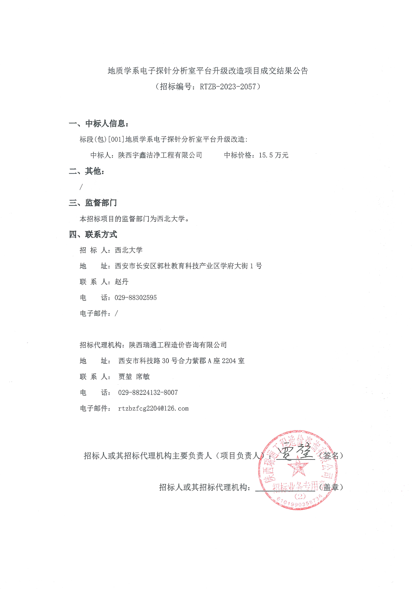 8868体育登录地质学系电子探针分析室平台升级改造项目成交结果公告