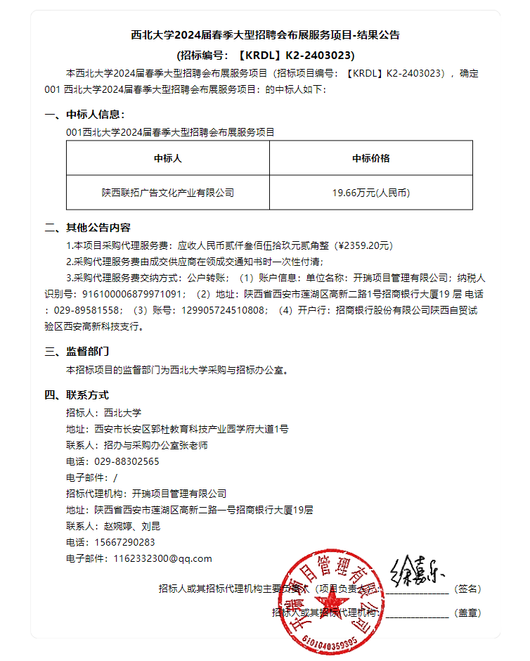 8868体育登录2024届春季大型招聘会布展服务项目结果公告