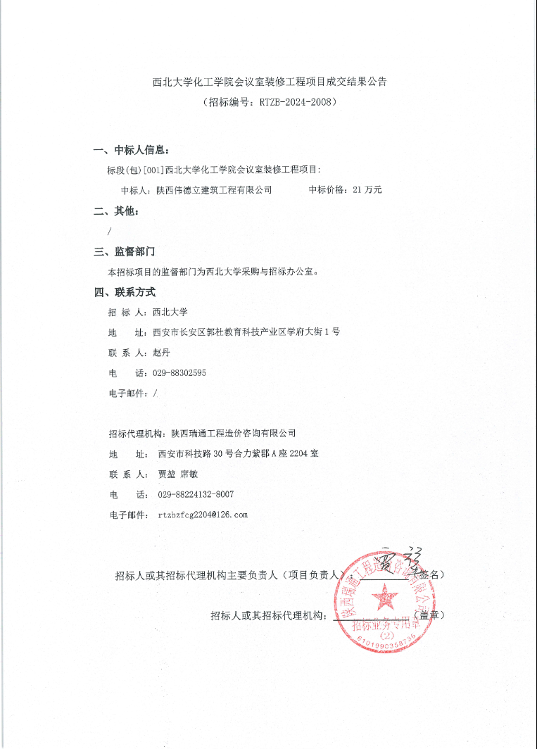8868体育登录化工学院会议室装修工程项目成交结果公告
