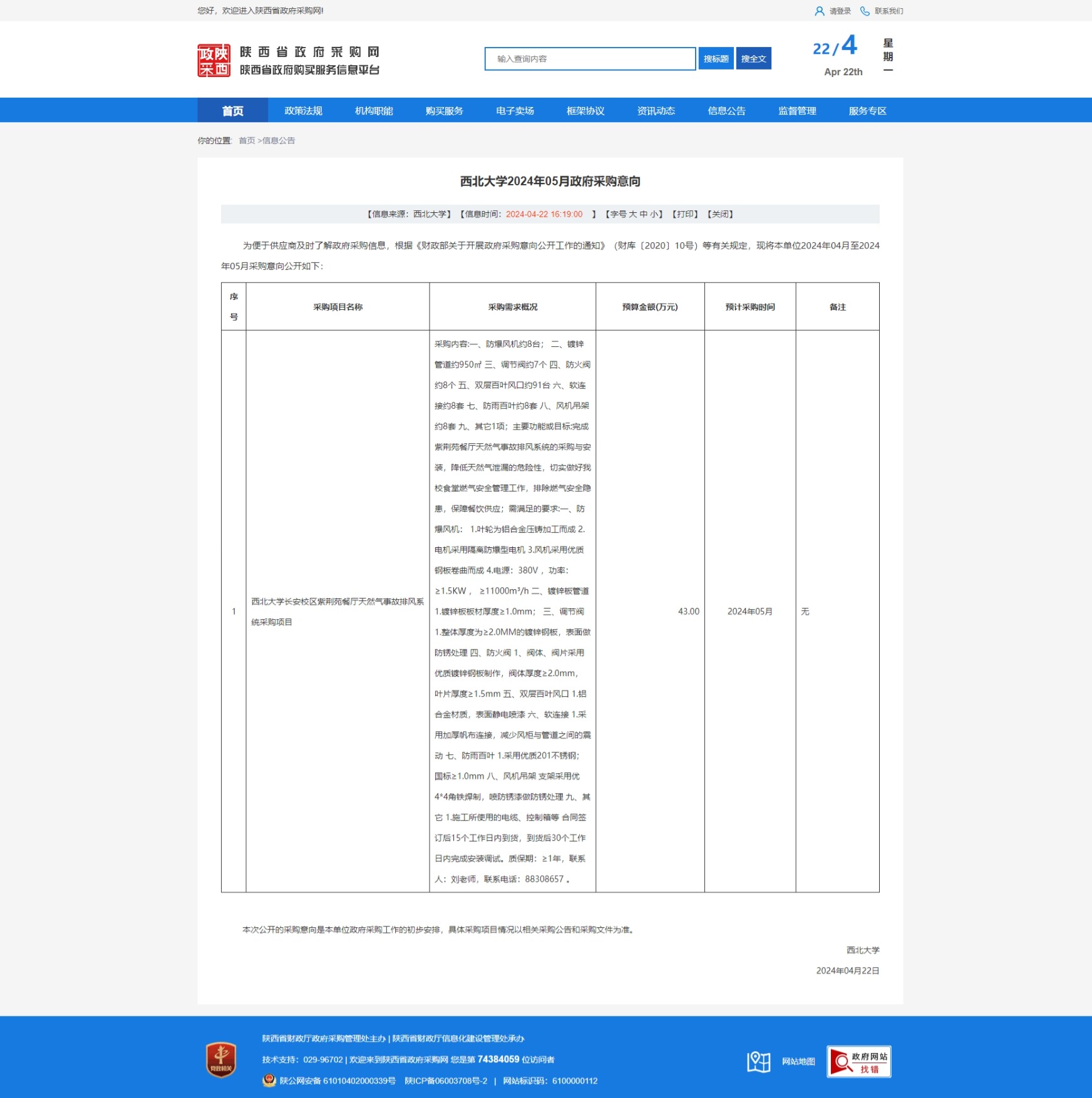 8868体育登录2024年05月政府采购意向 作者: 编辑:采购与招标办公室 时间:2024-04-22 原公告链接:https://www.ccgp-shaanxi.gov.cn/freecms/site/shaanxi/ggxx/info/2024/8a69c2f18edfb8e9018f034a758507c8.html?noticeType=59¬iceId=6c449ff0-0083-11ef-b8b6-08c0eb20c666