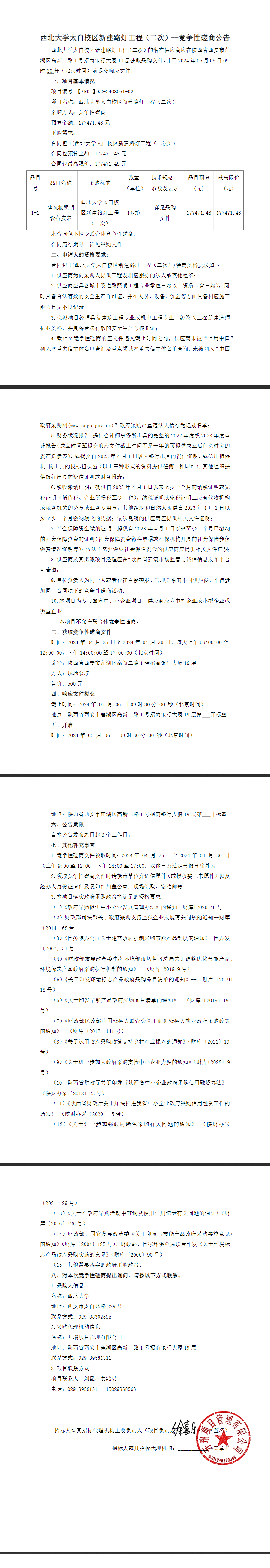 8868体育登录太白校区新建路灯工程(二次)竞争性磋商公告