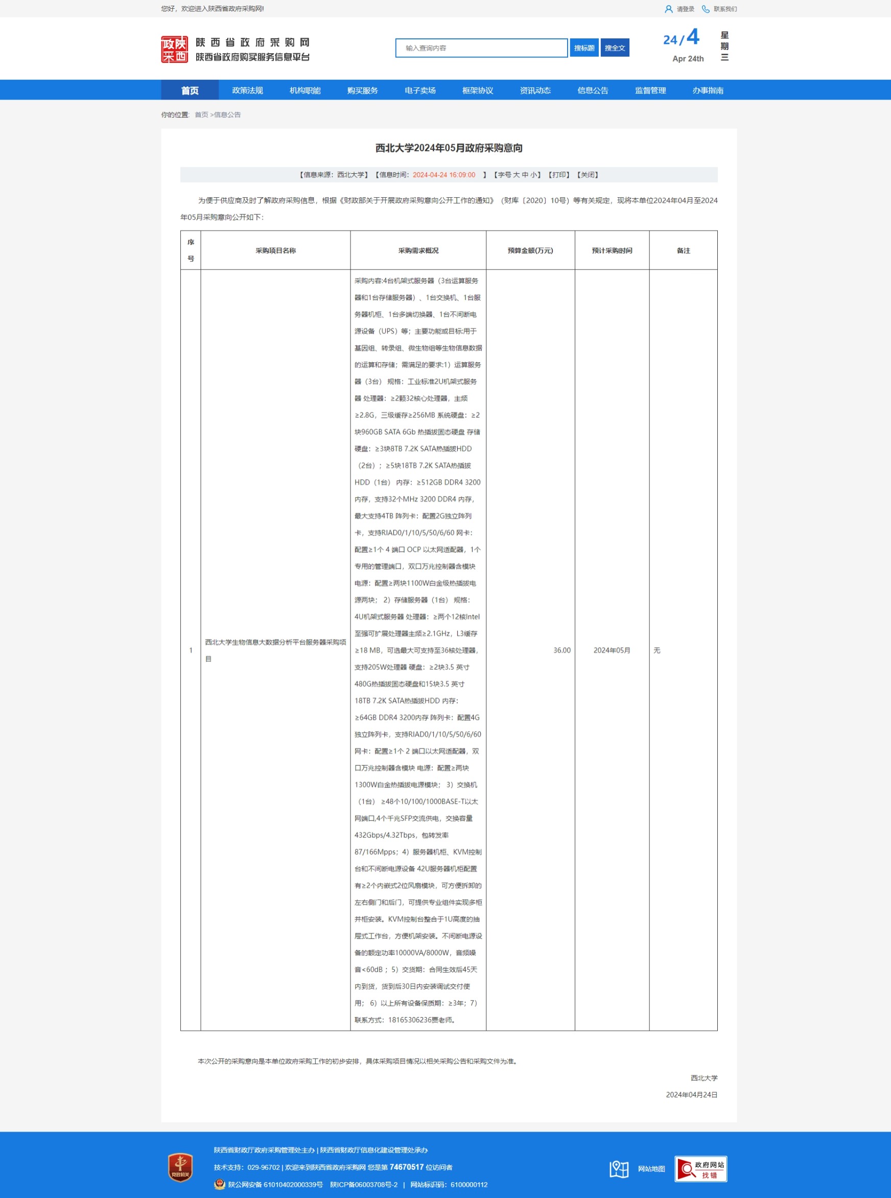 8868体育登录2024年05月政府采购意向 作者: 编辑:采购与招标办公室 时间:2024-04-24 原公告链接:https://www.ccgp-shaanxi.gov.cn/freecms/site/shaanxi/ggxx/info/2024/8a69c67a8f0e0cfb018f0e3fa1d20f61.html?noticeType=59¬iceId=66e64df3-0213-11ef-b8b6-08c0eb20c666