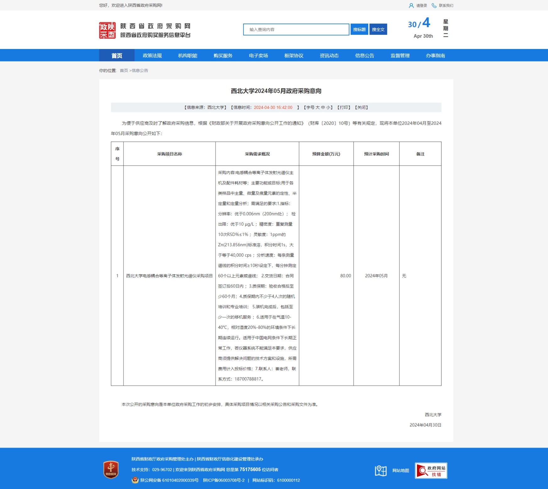 8868体育登录2024年05月政府采购意向 作者: 编辑:采购与招标办公室 时间:2024-04-30 原公告链接:https://www.ccgp-shaanxi.gov.cn/freecms/site/shaanxi/ggxx/info/2024/8a69c2f18f23d42a018f2e26ba787387.html?noticeType=59¬iceId=c2550b64-06ce-11ef-b8b6-08c0eb20c666