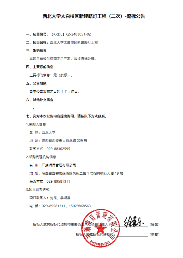 8868体育登录太白校区新建路灯工程(二次)-流标公告