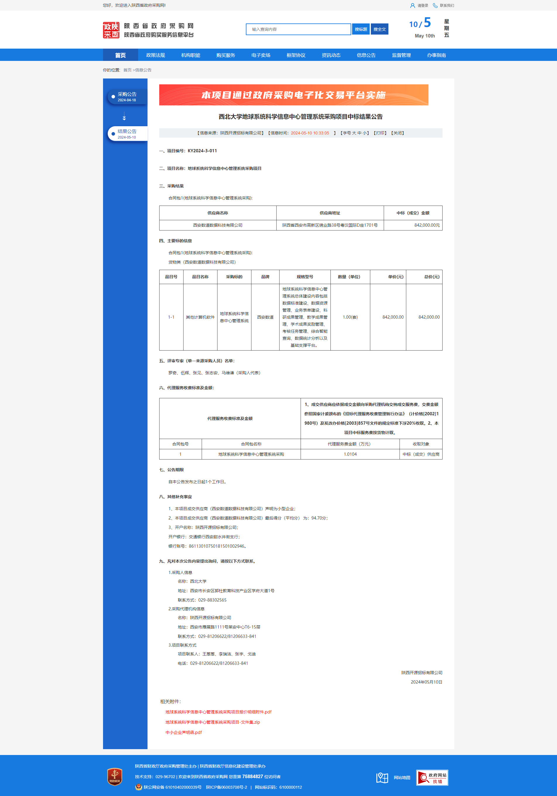 8868体育登录地球系统科学信息中心管理系统采购项目中标结果公告
