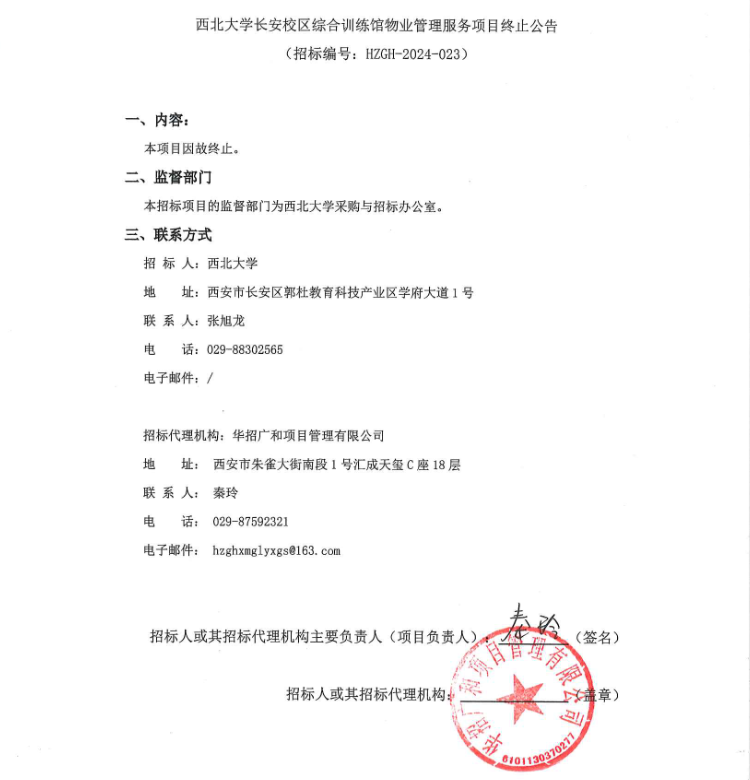 8868体育登录长安校区综合训练馆物业管理服务项目终止公告