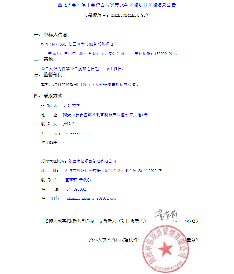 8868体育登录附属中学校园网宽带服务采购项目采购结果公告