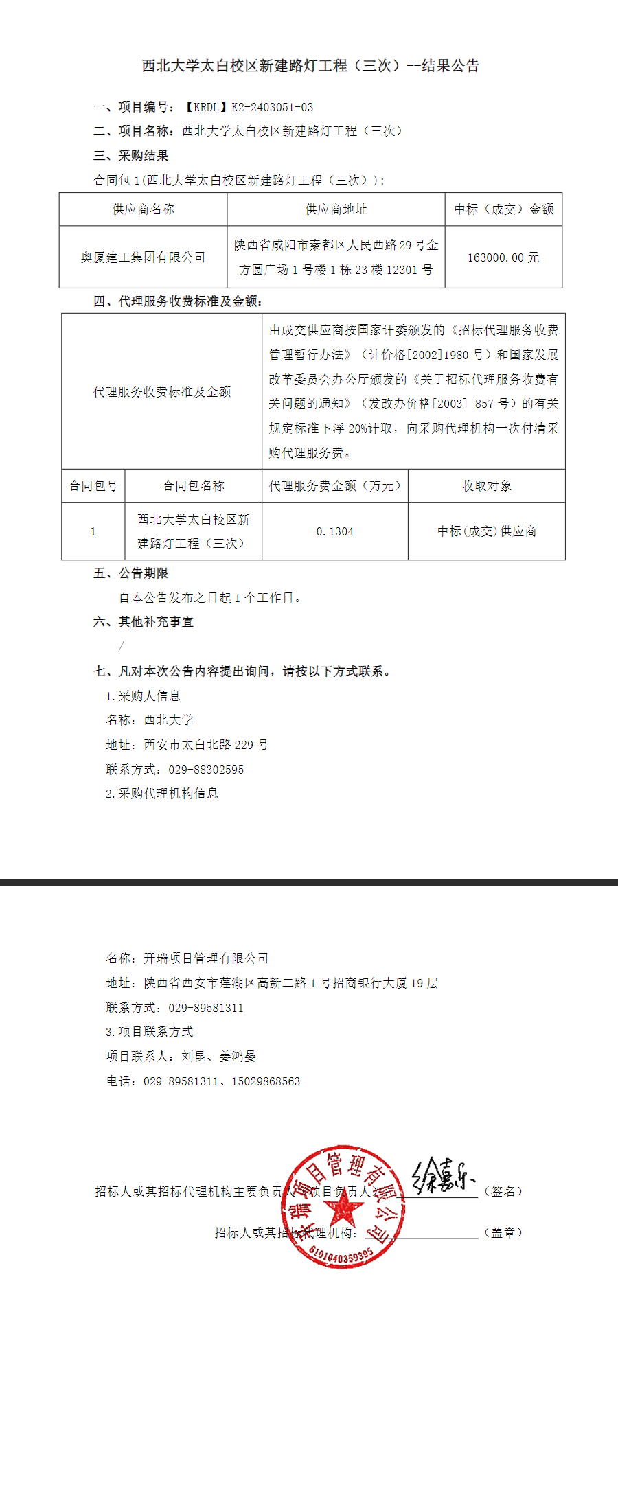 8868体育登录太白校区新建路灯工程(三次)结果公告