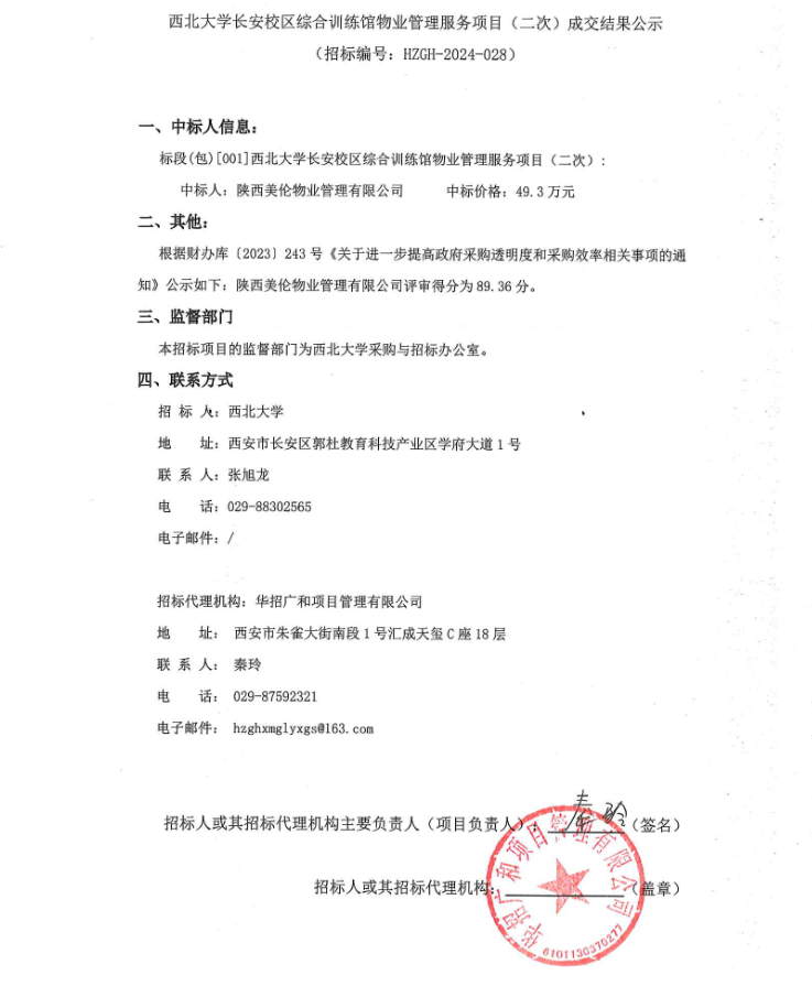 8868体育登录长安校区综合训练馆物业管理服务项目(二次)成交结果公示
