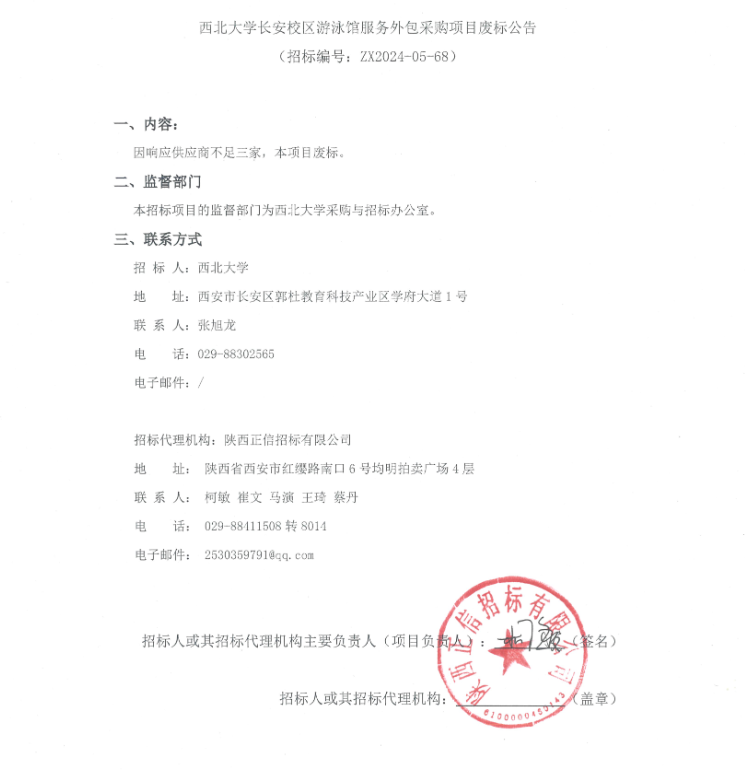 8868体育登录长安校区游泳馆服务外包采购项目废标公告