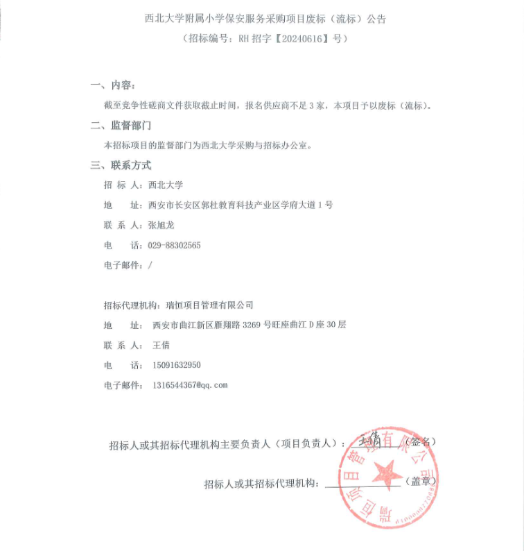 8868体育登录附属小学保安服务采购项目废标(流标)公告