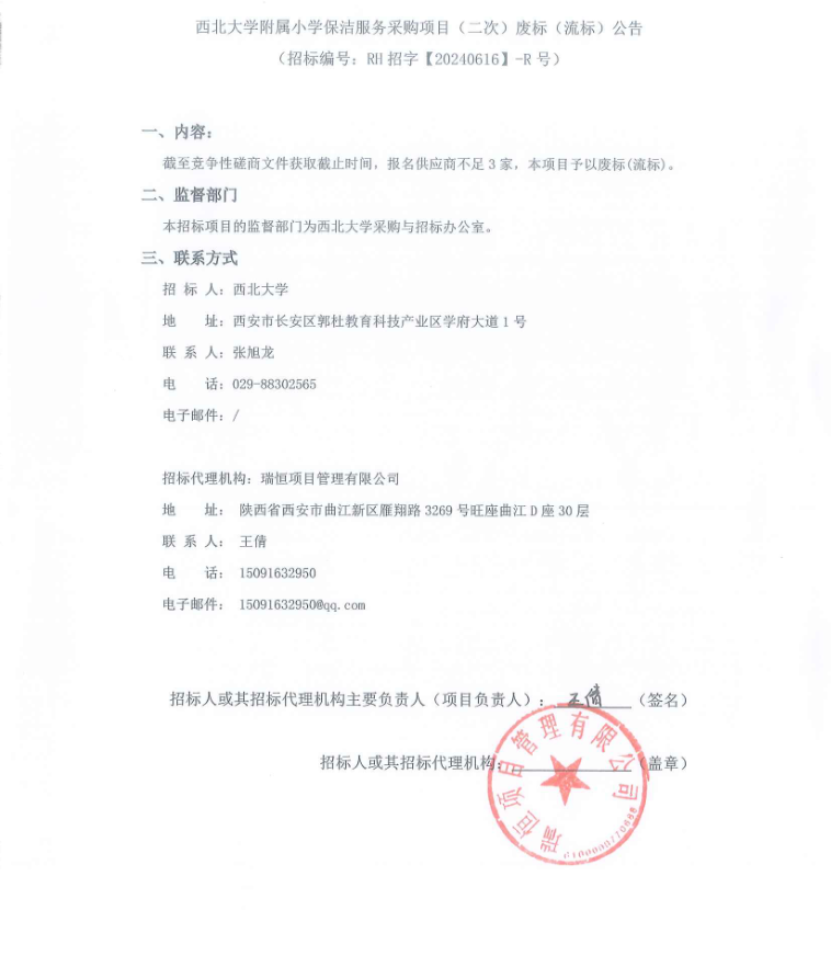 8868体育登录附属小学保洁服务采购项目(二次)废标(流标)公告