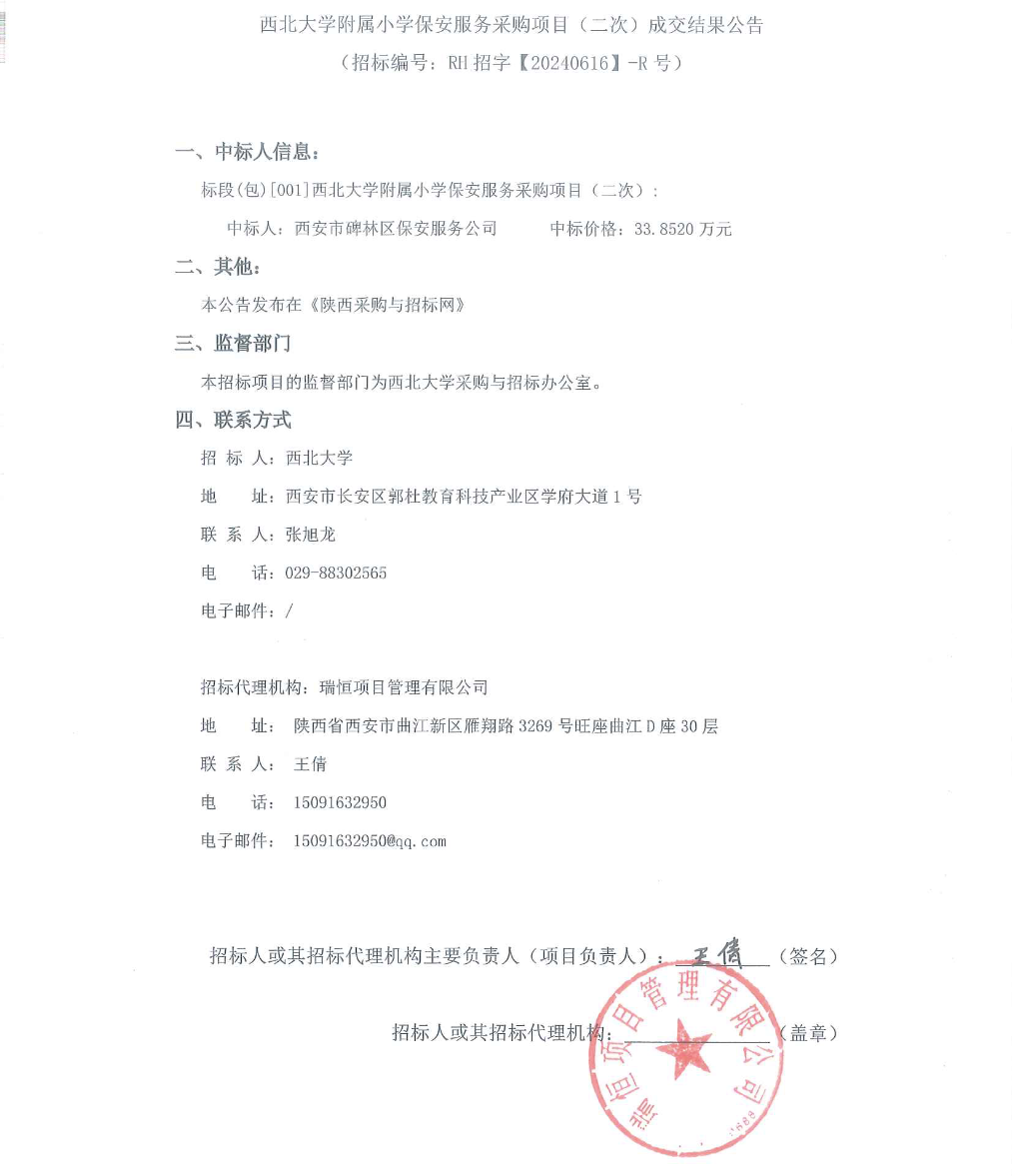 8868体育登录附属小学保安服务采购项目(二次)成交结果公告