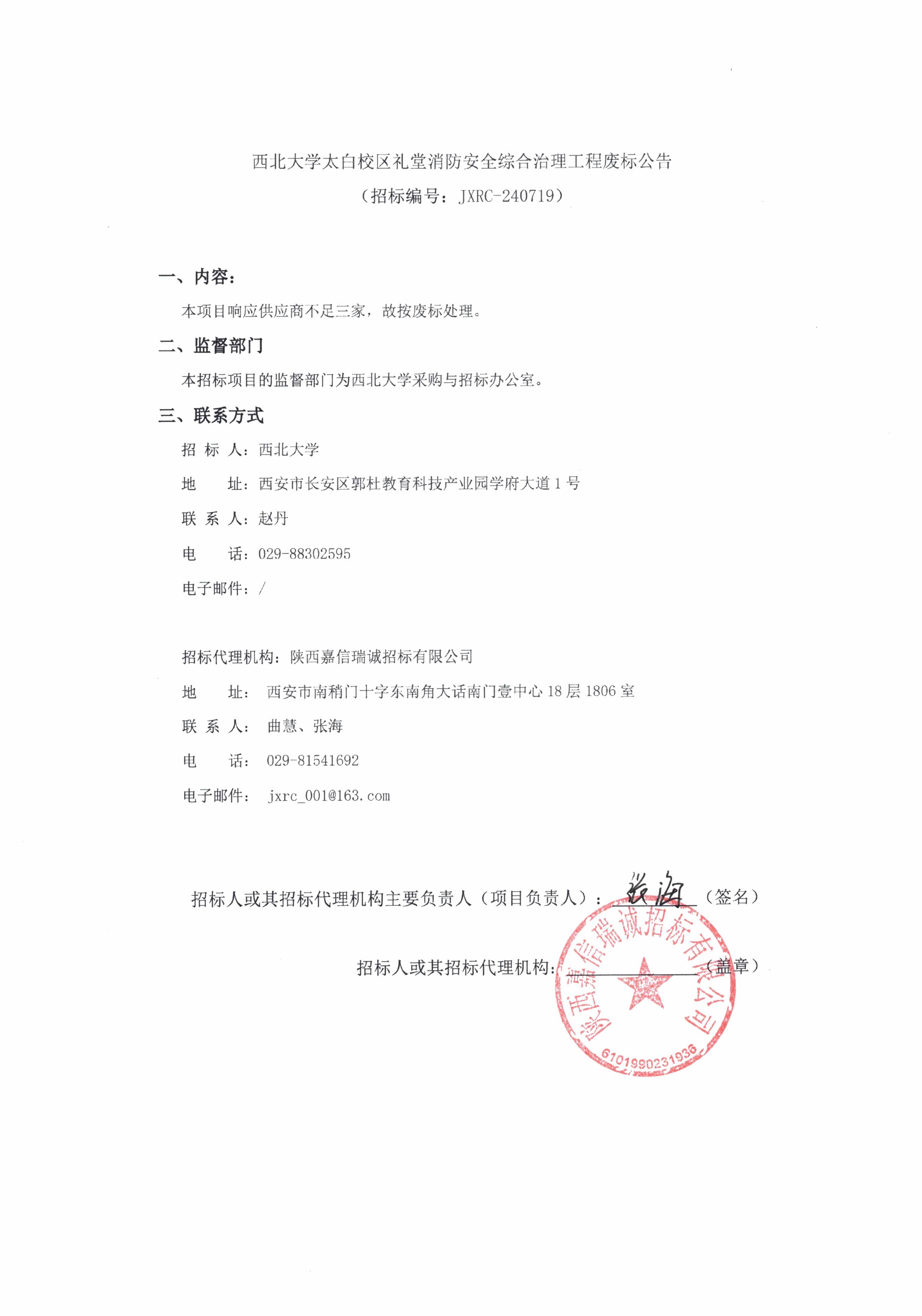 8868体育登录太白校区礼堂消防安全综合治理工程废标公告