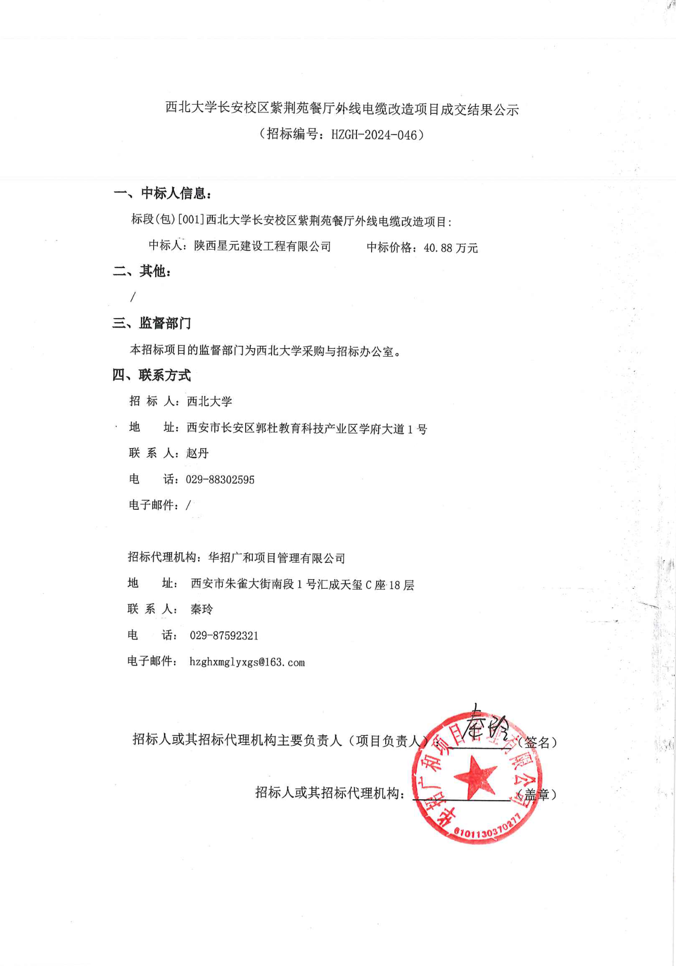8868体育登录长安校区紫荆苑餐厅外线电缆改造项目成交结果公示