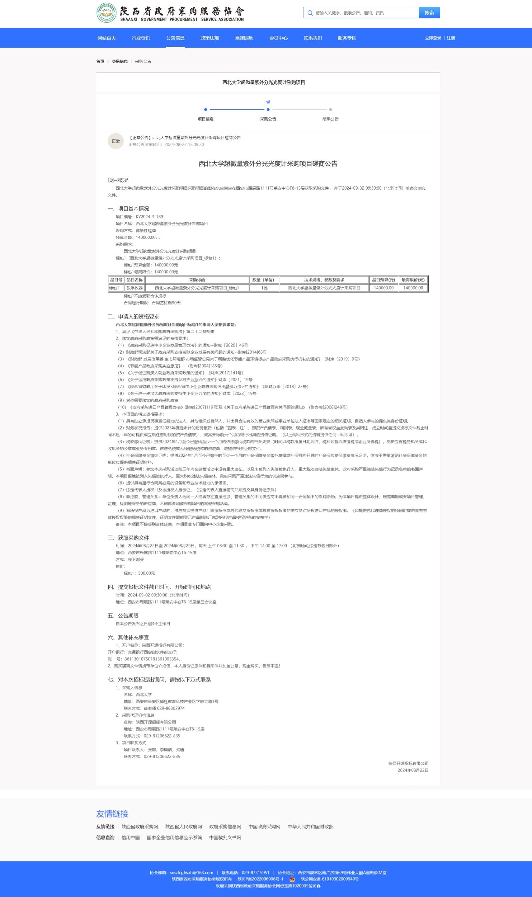 8868体育登录超微量紫外分光光度计采购项目磋商公告 作者: 编辑:采购与招标办公室 时间:2024-08-23 原公告链接:https://www.sxszfcgfwxh.cn/#/tender-vTradeAnnouncement-anno?tenderProjectId=1826435442958446594&rootId=1549250743389216770