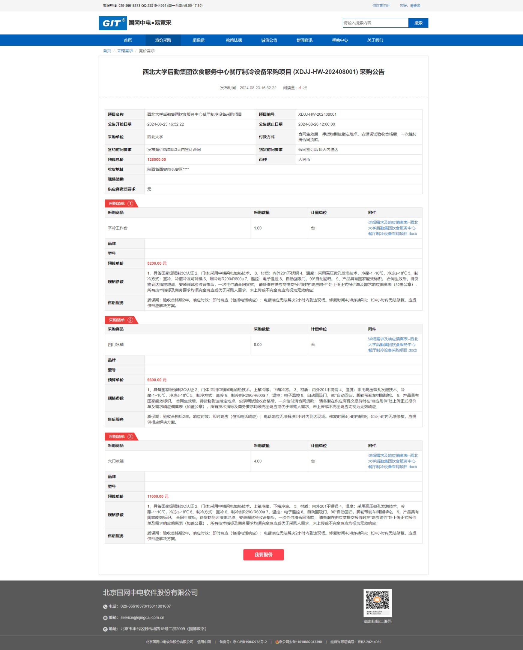 8868体育登录后勤集团饮食服务中心餐厅制冷设备采购项目 (XDJJ-HW-202408001) 竞价公告 作者: 编辑:采购与招标办公室 时间:2024-08-23 原公告链接:https://www.ejingcai.com.cn/site/bidding/detail/12189