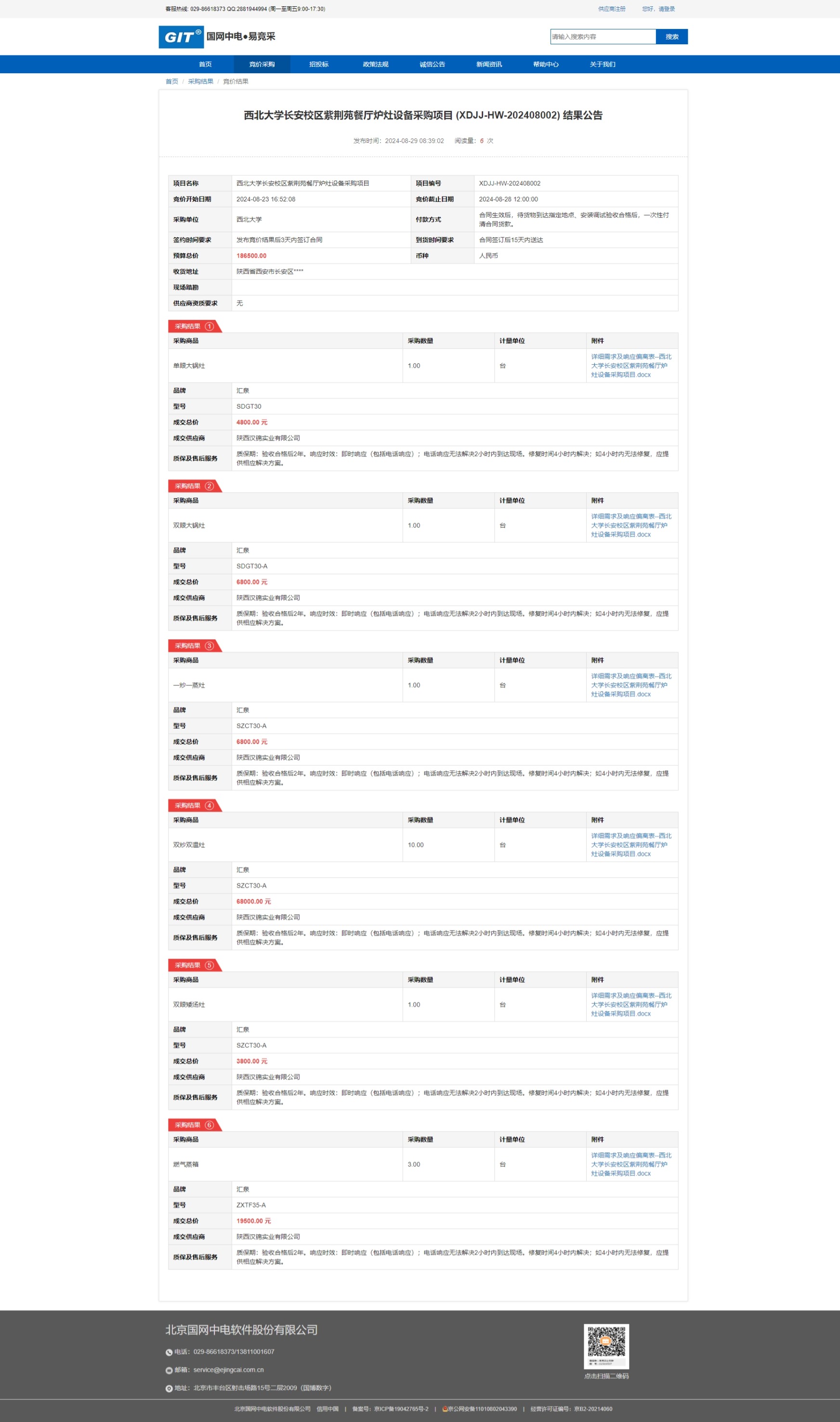 8868体育登录长安校区紫荆苑餐厅炉灶设备采购项目 (XDJJ-HW-202408002) 竞价结果公告 作者: 编辑:采购与招标办公室 时间:2024-08-29 原公告链接:https://www.ejingcai.com.cn/site/bidding/detail/12244