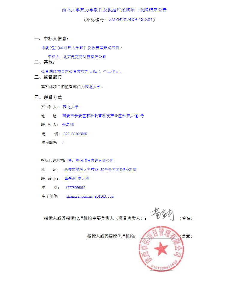 8868体育登录热力学软件及数据库采购项目采购结果公告