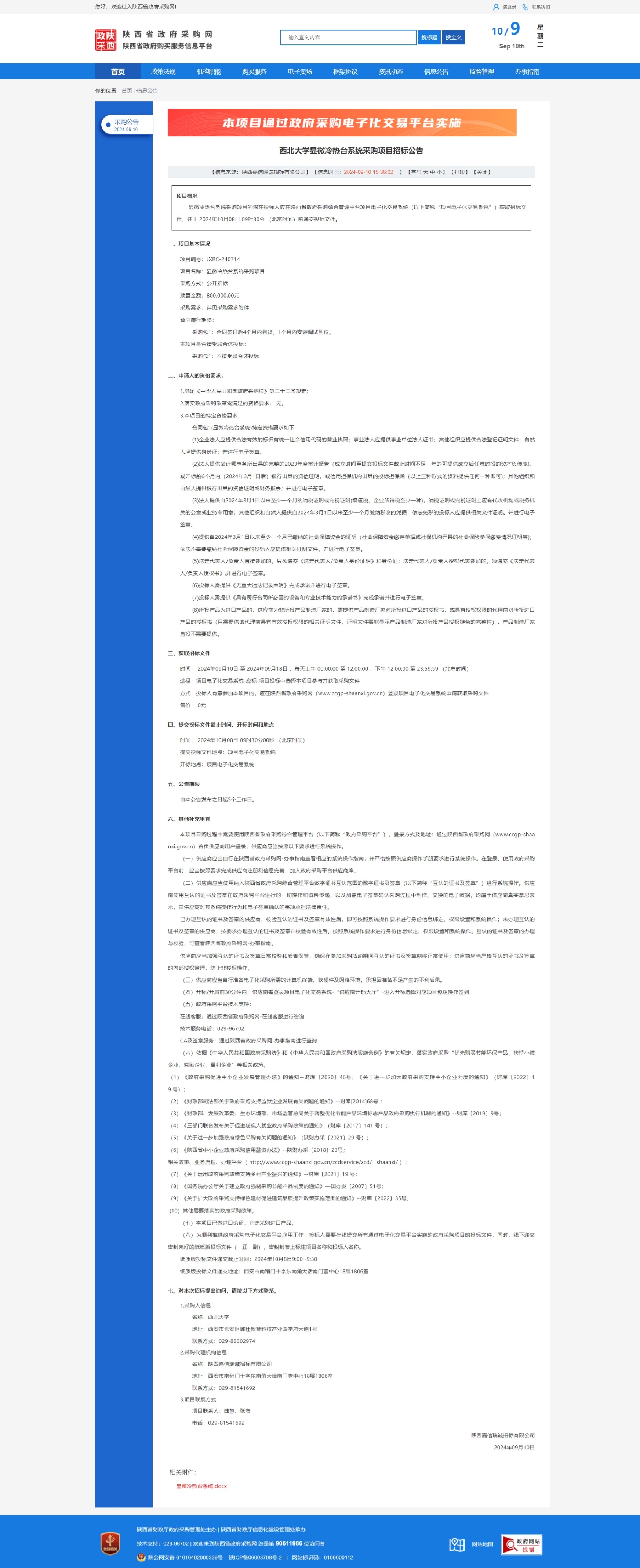 8868体育登录显微冷热台系统采购项目招标公告 作者: 编辑:采购与招标办公室 时间:2024-09-10 原公告链接:https://www.ccgp-shaanxi.gov.cn/freecms/site/shaanxi/ggxx/info/2024/8a69c59190e5cfc20191daa3bed23540.html?noticeType=001011¬iceId=28d86de2-6f49-11ef-8063-08c0eb20c666