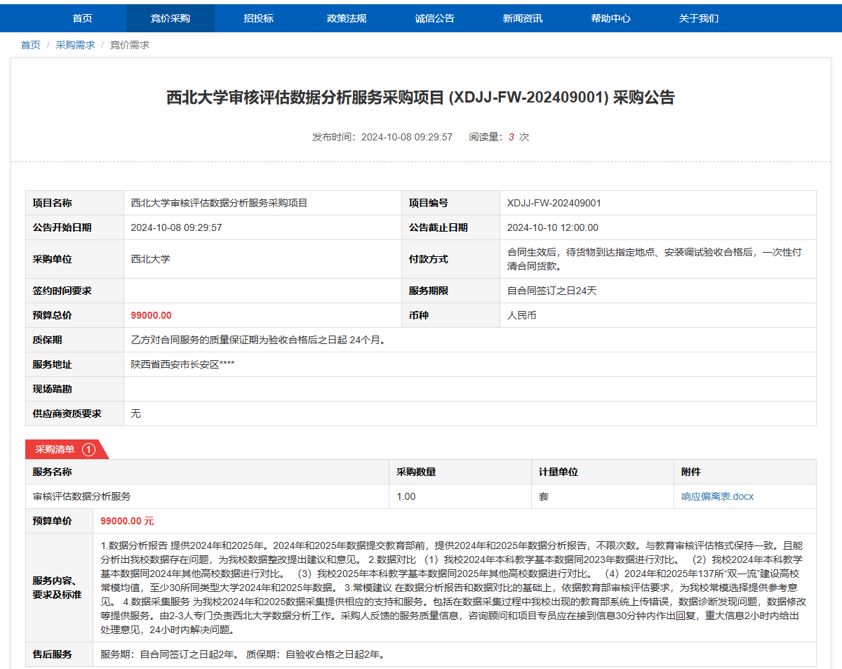 8868体育登录审核评估数据分析服务采购项目(XDJJ-FW-202409001)竞价采购公告 作者: 编辑: 时间:2024-10-08 原公告链接:https://www.ejingcai.com.cn/site/bidding/detail/13071