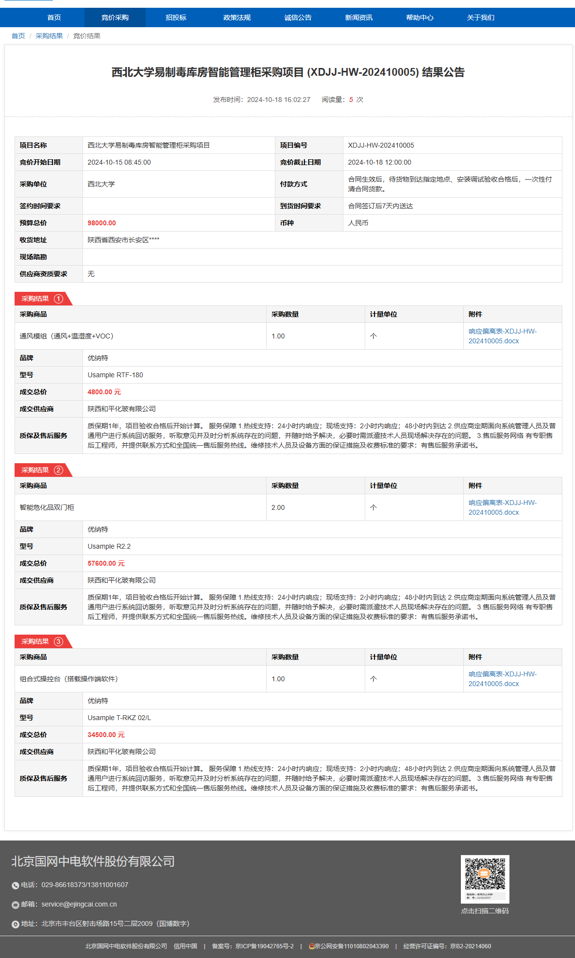 8868体育登录易制毒库房智能管理柜采购项目(XDJJ-HW-202410005)竞价结果公告 作者:采购与招标办公室 编辑: 时间:2024-10-18 原公告链接:https://www.ejingcai.com.cn/site/bidding/detail/13487
