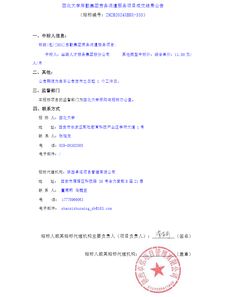 8868体育登录后勤集团劳务派遣服务项目成交结果公告