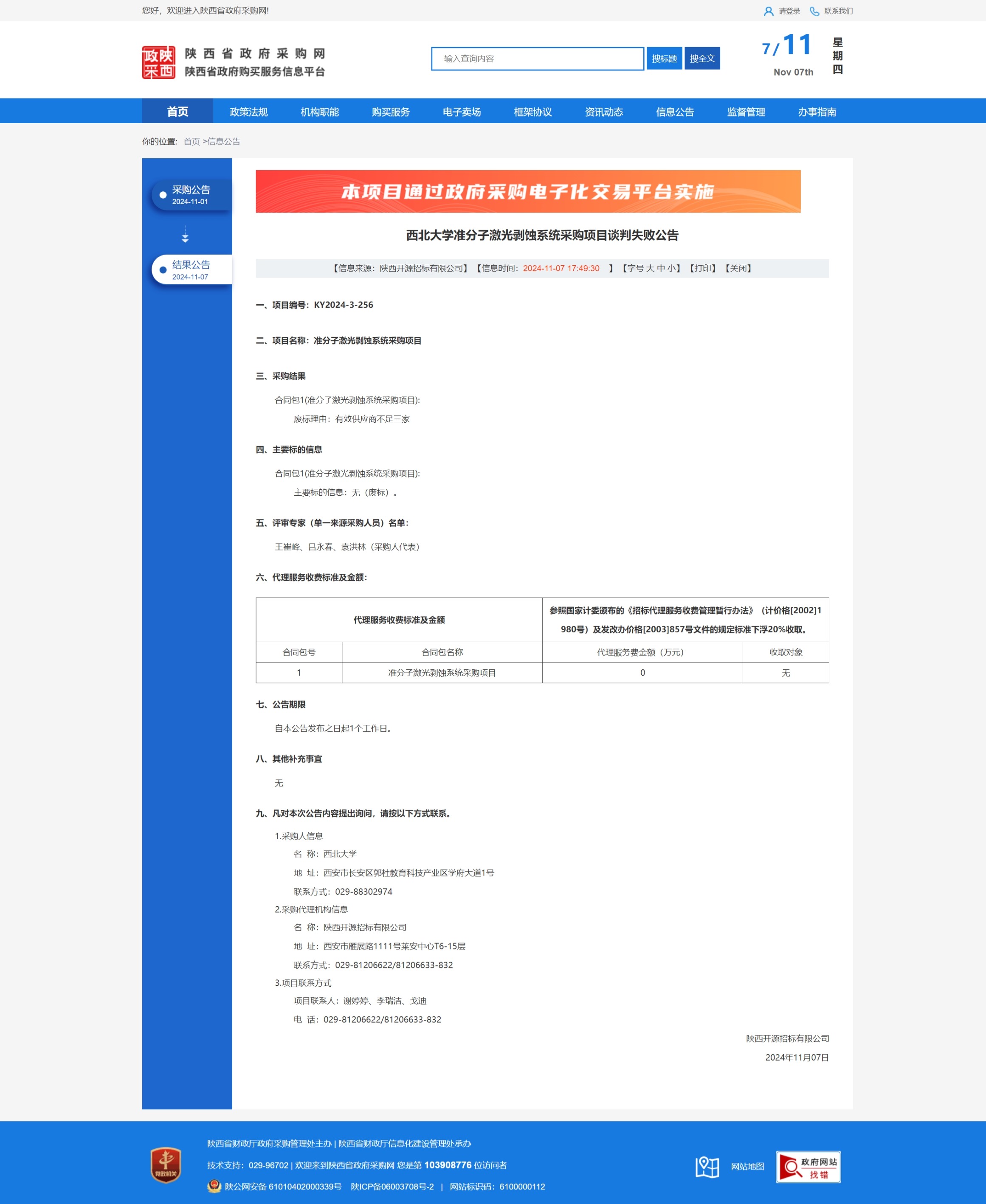 8868体育登录准分子激光剥蚀系统采购项目谈判失败公告 作者: 编辑:采购与招标办公室 时间:2024-11-07 原公告链接:https://www.ccgp-shaanxi.gov.cn/freecms/site/shaanxi/ggxx/info/2024/8a69c44e9218572b019305fc5c7645f4.html?noticeType=001006¬iceId=23aeceff-9cef-11ef-8063-08c0eb20c666