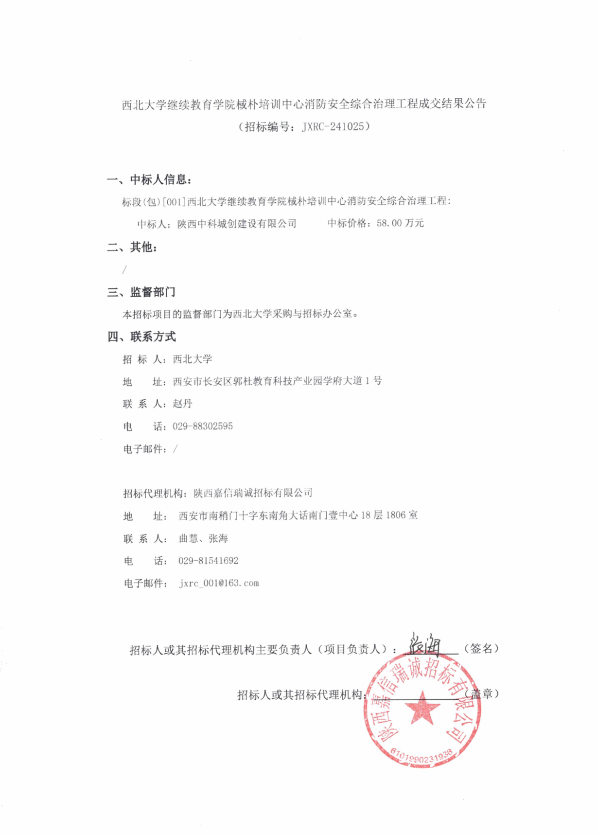 8868体育登录继续教育学院棫朴培训中心消防安全综合治理工程成交结果公告