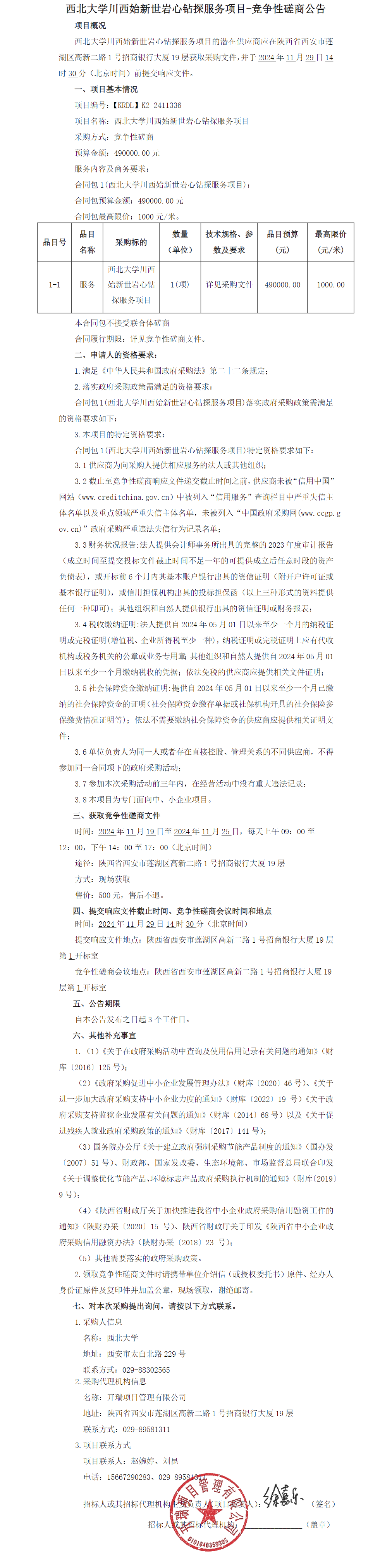 8868体育登录川西始新世岩心钻探服务项目竞争性磋商公告