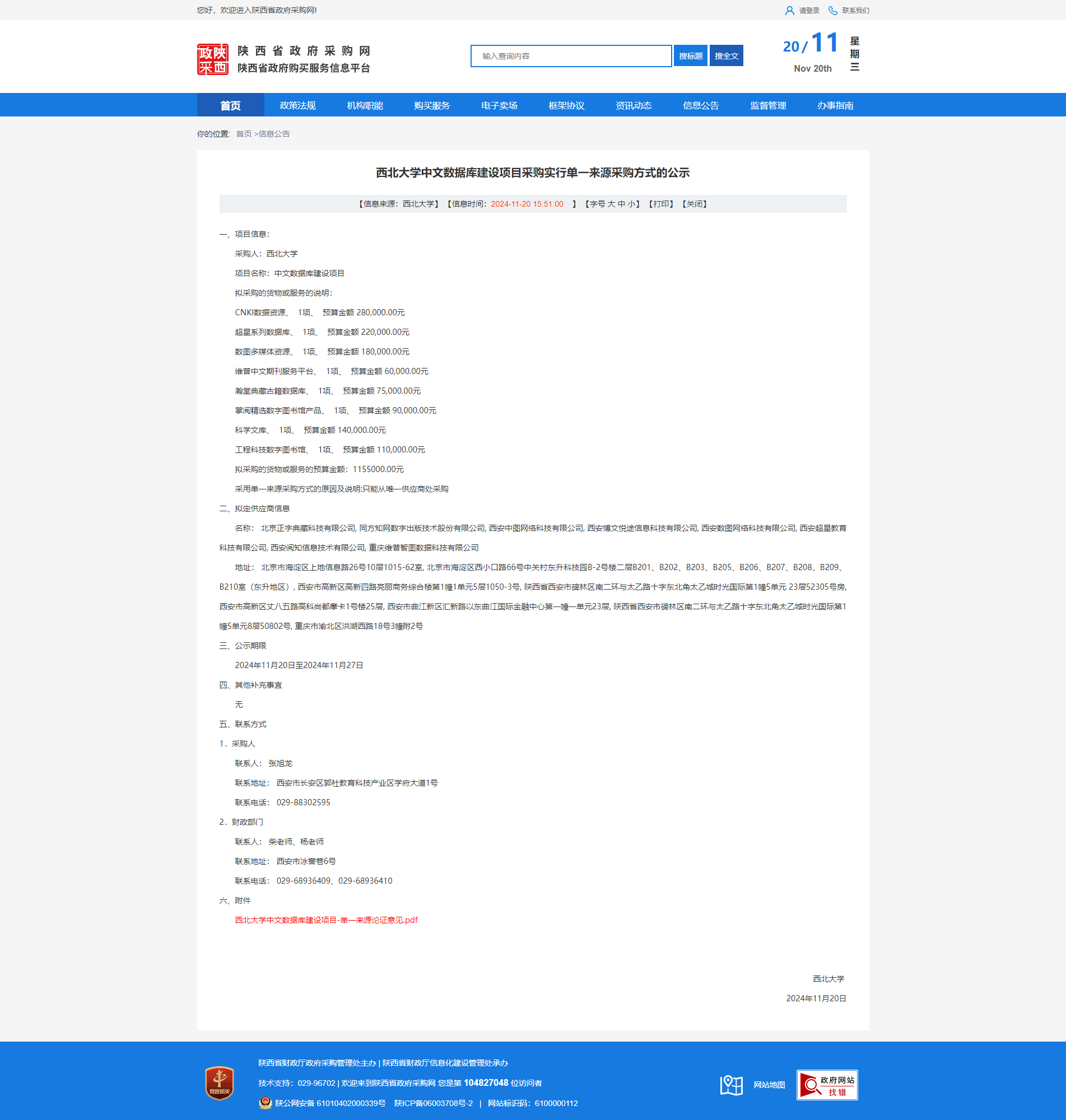 8868体育登录中文数据库建设项目采购实行单一来源采购方式的公示