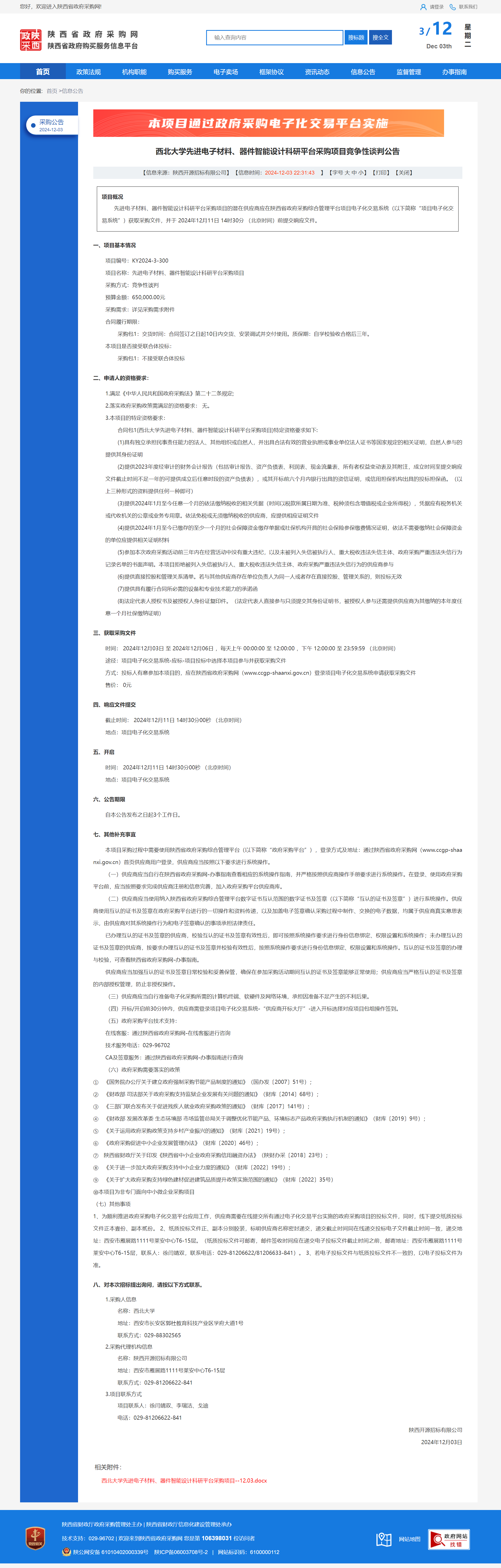 8868体育登录先进电子材料、器件智能设计科研平台采购项目竞争性谈判公告