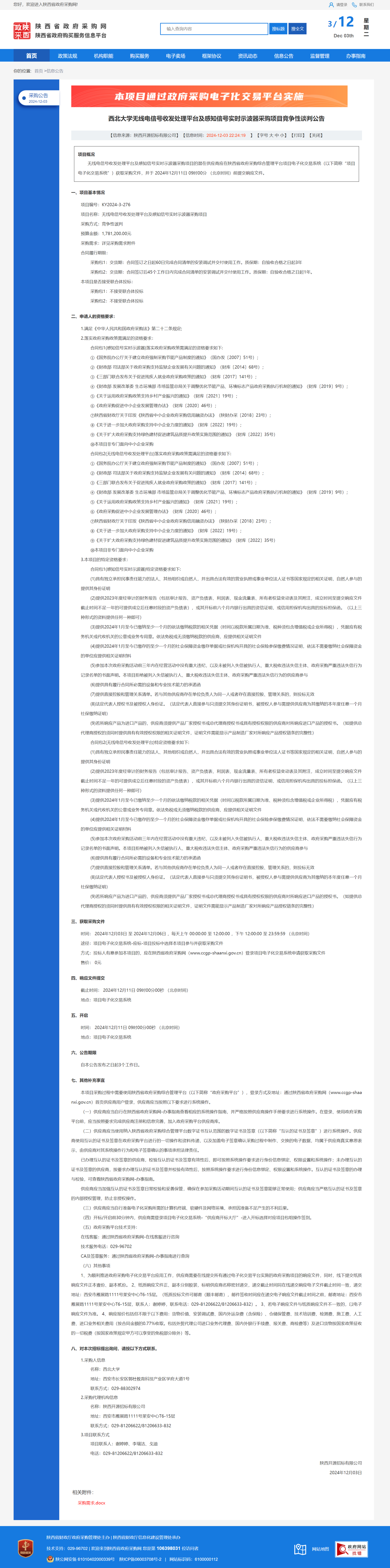 8868体育登录无线电信号收发处理平台及感知信号实时示波器采购项目竞争性谈判公告