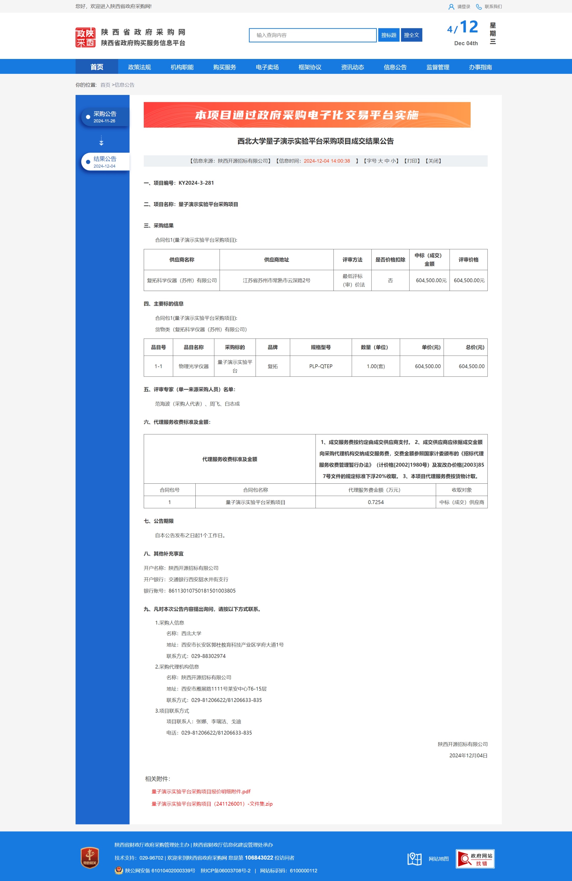 8868体育登录量子演示实验平台采购项目成交结果公告 作者: 编辑:薛利娟 时间:2024-12-04 原公告链接:https://www.ccgp-shaanxi.gov.cn/freecms/site/shaanxi/ggxx/info/2024/8a69c5a59218576d0193902f6a9a5c54.html?noticeType=001023¬iceId=b0c0bd1b-b206-11ef-8063-08c0eb20c666