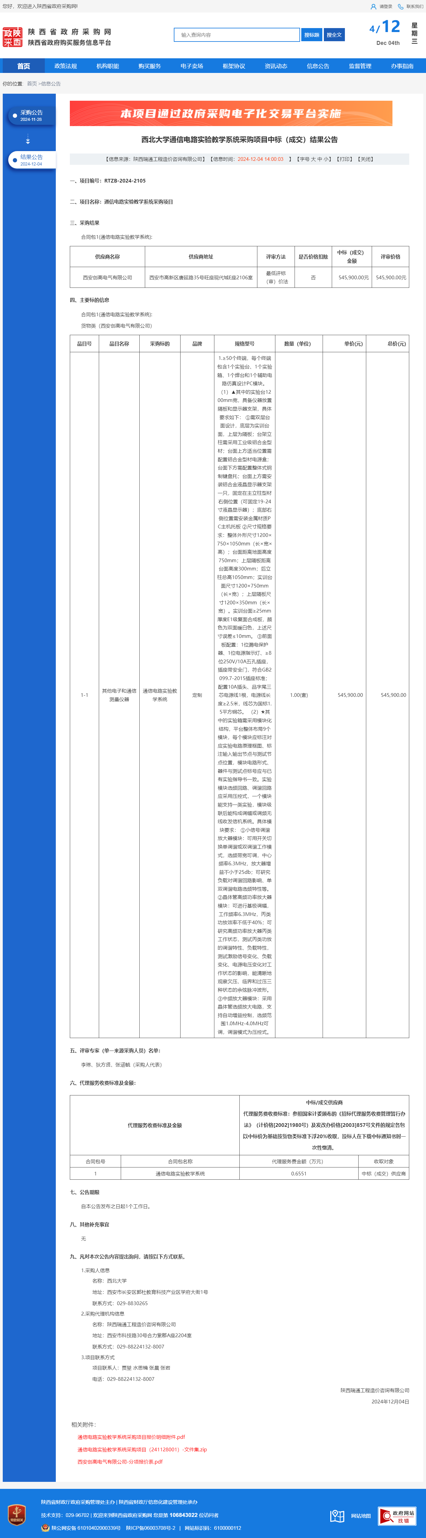 8868体育登录通信电路实验教学系统采购项目中标(成交)结果公告