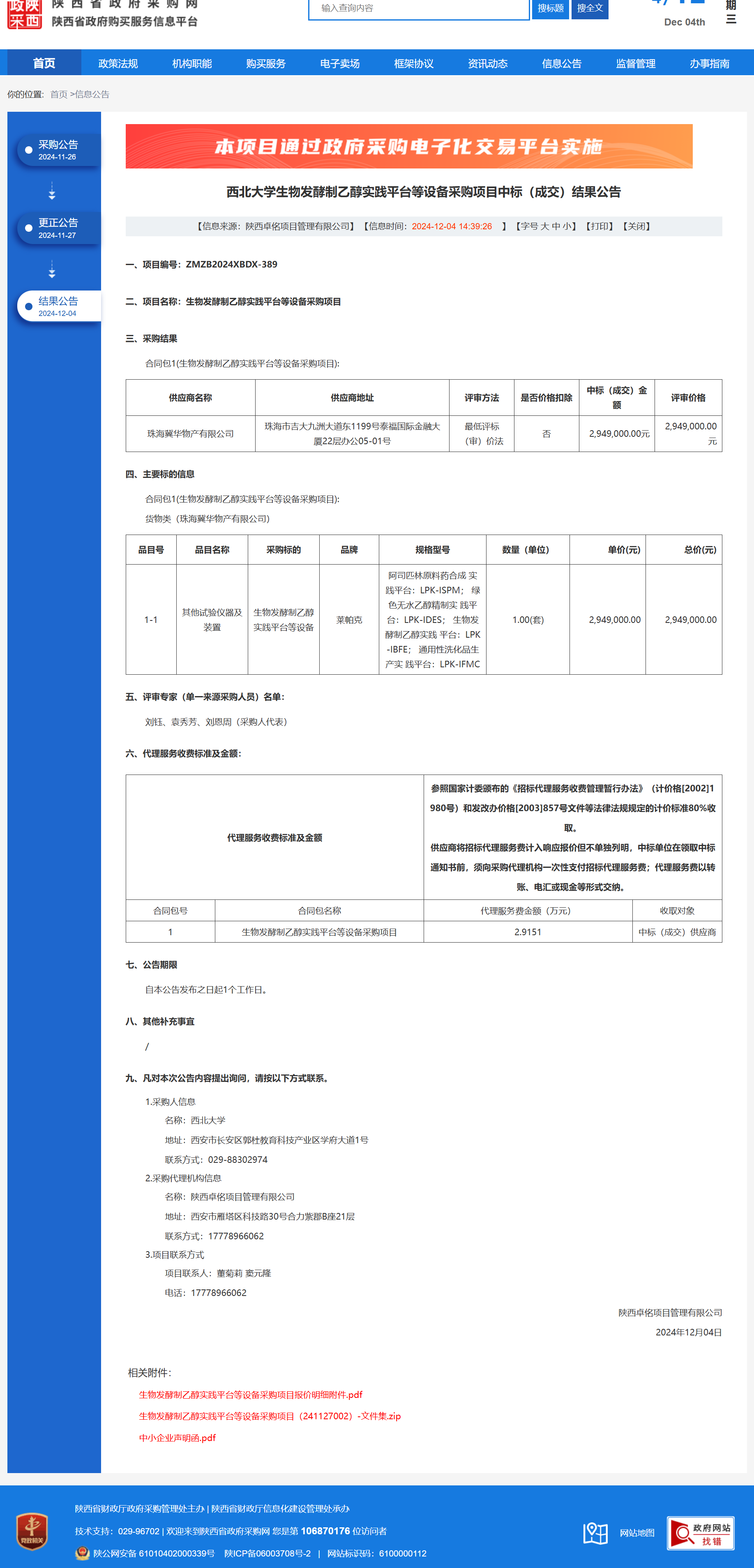 8868体育登录生物发酵制乙醇实践平台等设备采购项目中标(成交)结果公告 作者:采购与招标办公室 编辑: 时间:2024-12-04 原公告链接:https://www.ccgp-shaanxi.gov.cn/freecms/site/shaanxi/ggxx/info/2024/8a69c5a59218576d0193905cb113521a.html?noticeType=001023¬iceId=1cad3dce-b20c-11ef-8063-08c0eb20c666