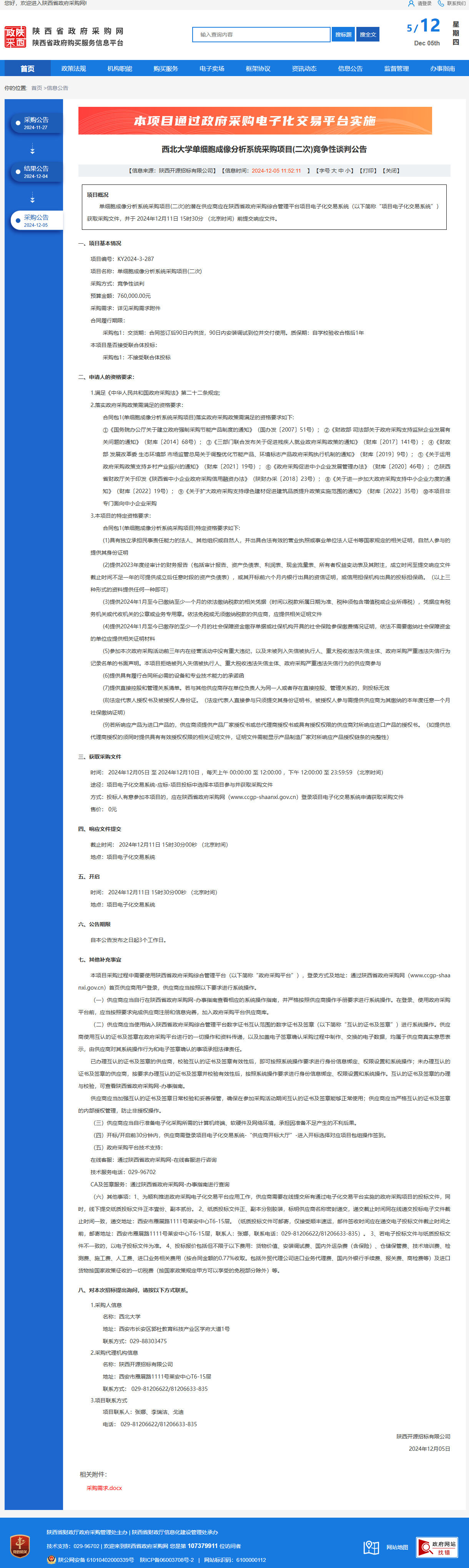 8868体育登录单细胞成像分析系统采购项目(二次)竞争性谈判公告 作者:采购与招标办公室 编辑: 时间:2024-12-05 原公告链接:https://www.ccgp-shaanxi.gov.cn/freecms/site/shaanxi/ggxx/info/2024/8a69c251921857370193912b91403442.html?noticeType=001013¬iceId=e9b719c8-b2bd-11ef-8063-08c0eb20c666