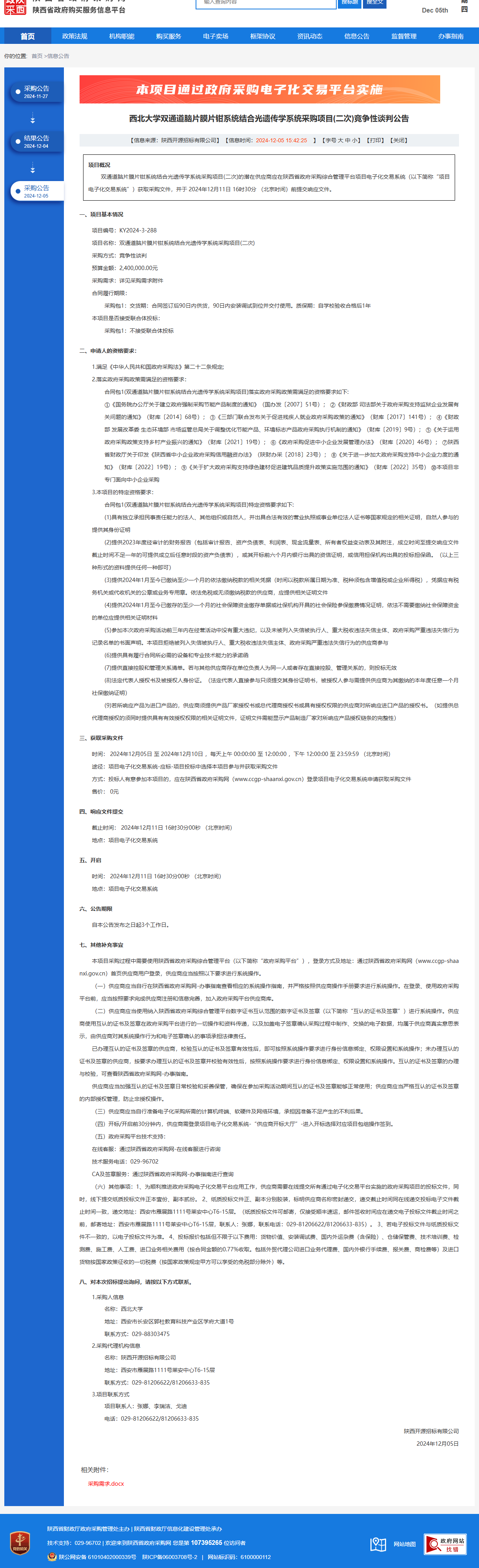 8868体育登录双通道脑片膜片钳系统结合光遗传学系统采购项目(二次)竞争性谈判公告 作者:采购与招标办公室 编辑: 时间:2024-12-05 原公告链接:https://www.ccgp-shaanxi.gov.cn/freecms/site/shaanxi/ggxx/info/2024/8a69c44e9218572b0193959c7d8f36e5.html?noticeType=001013¬iceId=13c69da8-b2de-11ef-8063-08c0eb20c666