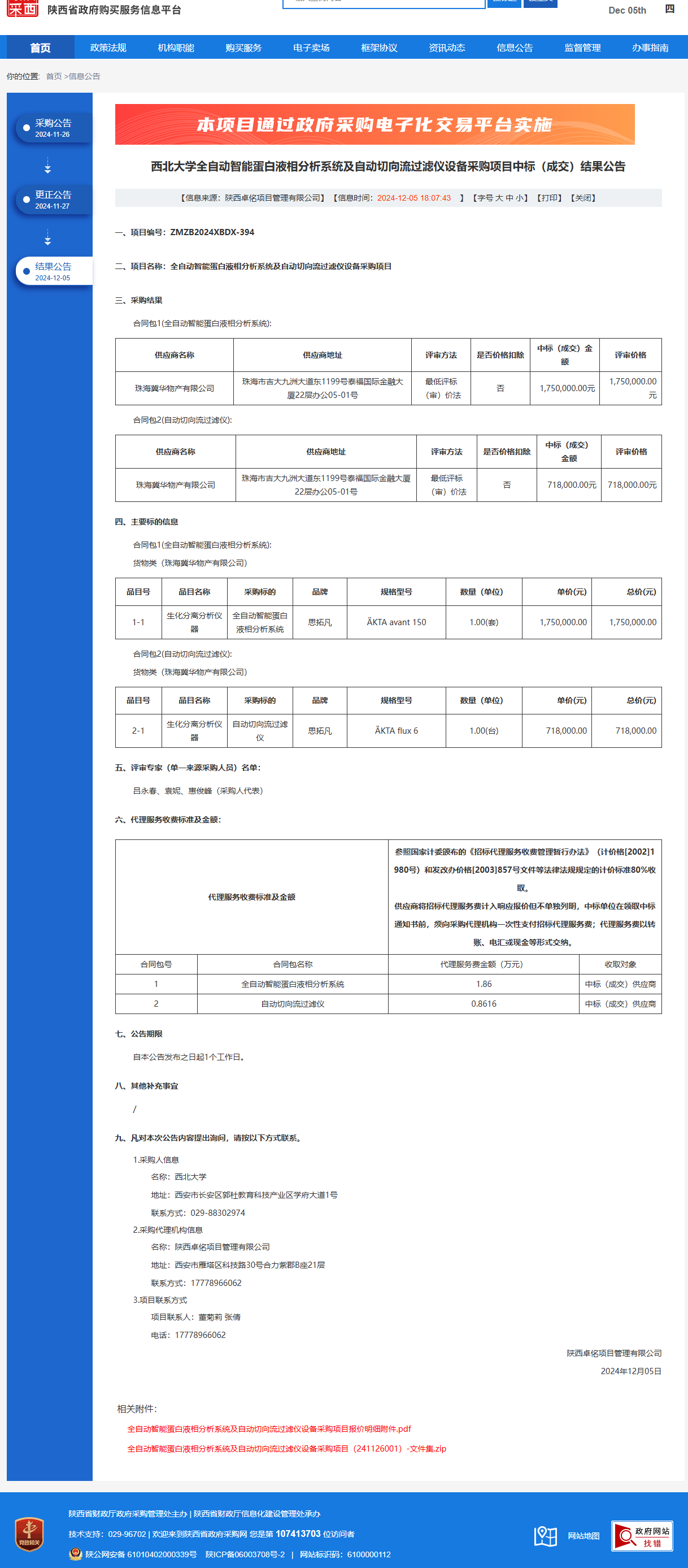 8868体育登录全自动智能蛋白液相分析系统及自动切向流过滤仪设备采购项目中标(成交)结果公告 作者:采购与招标办公室 编辑: 时间:2024-12-05 原公告链接:https://www.ccgp-shaanxi.gov.cn/freecms/site/shaanxi/ggxx/info/2024/8a69c44e9218572b01939643fffe267c.html?noticeType=001023¬iceId=5fe3fe15-b2f2-11ef-8063-08c0eb20c666