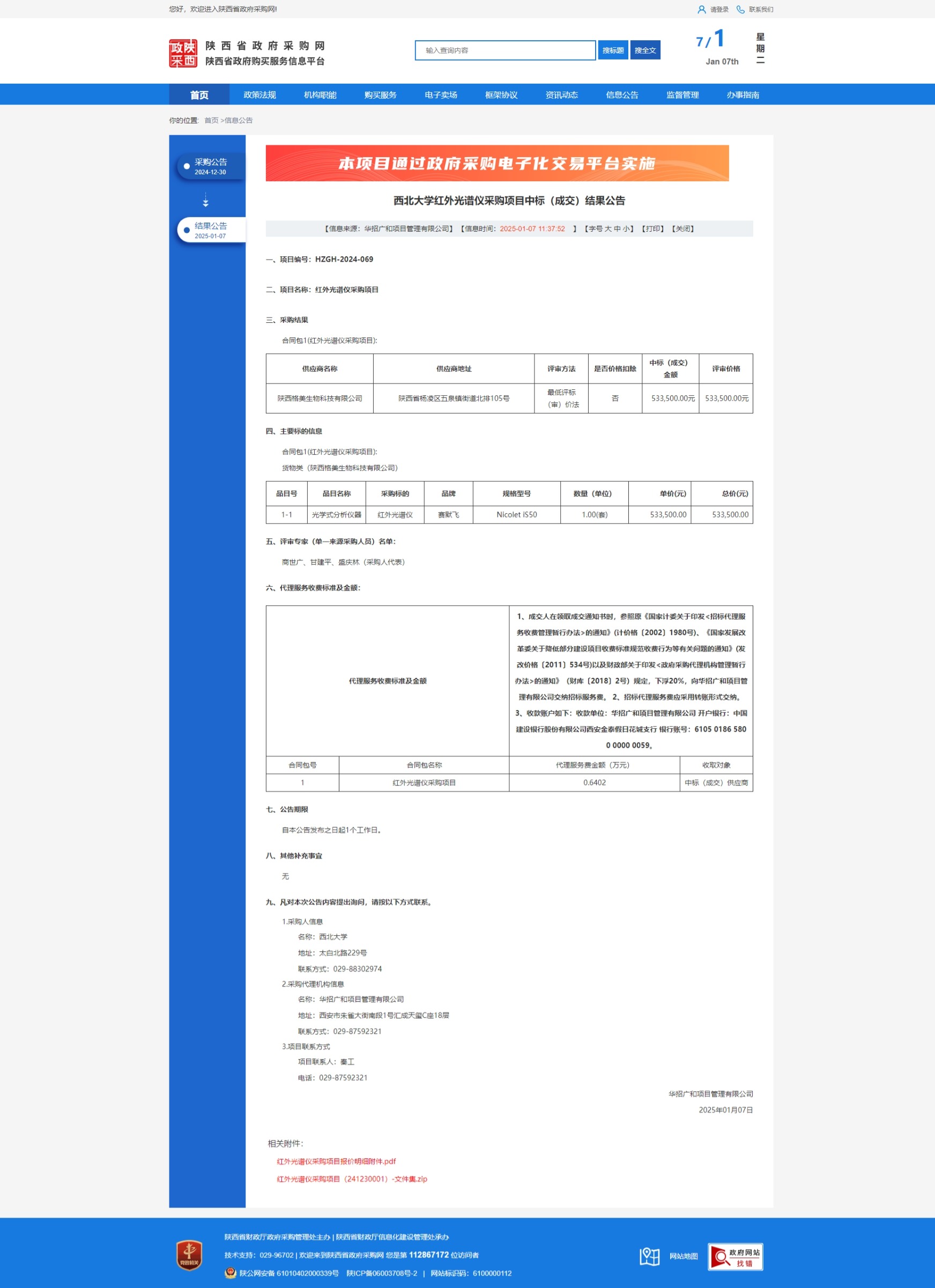 8868体育登录红外光谱仪采购项目中标(成交)结果公告 作者: 编辑:薛利娟 时间:2025-01-07 原公告链接:https://www.ccgp-shaanxi.gov.cn/freecms/site/shaanxi/ggxx/info/2025/8a69c2519218573701943eb8c6df6bba.html?noticeType=001023¬iceId=71bdda35-ccaa-11ef-8063-08c0eb20c666