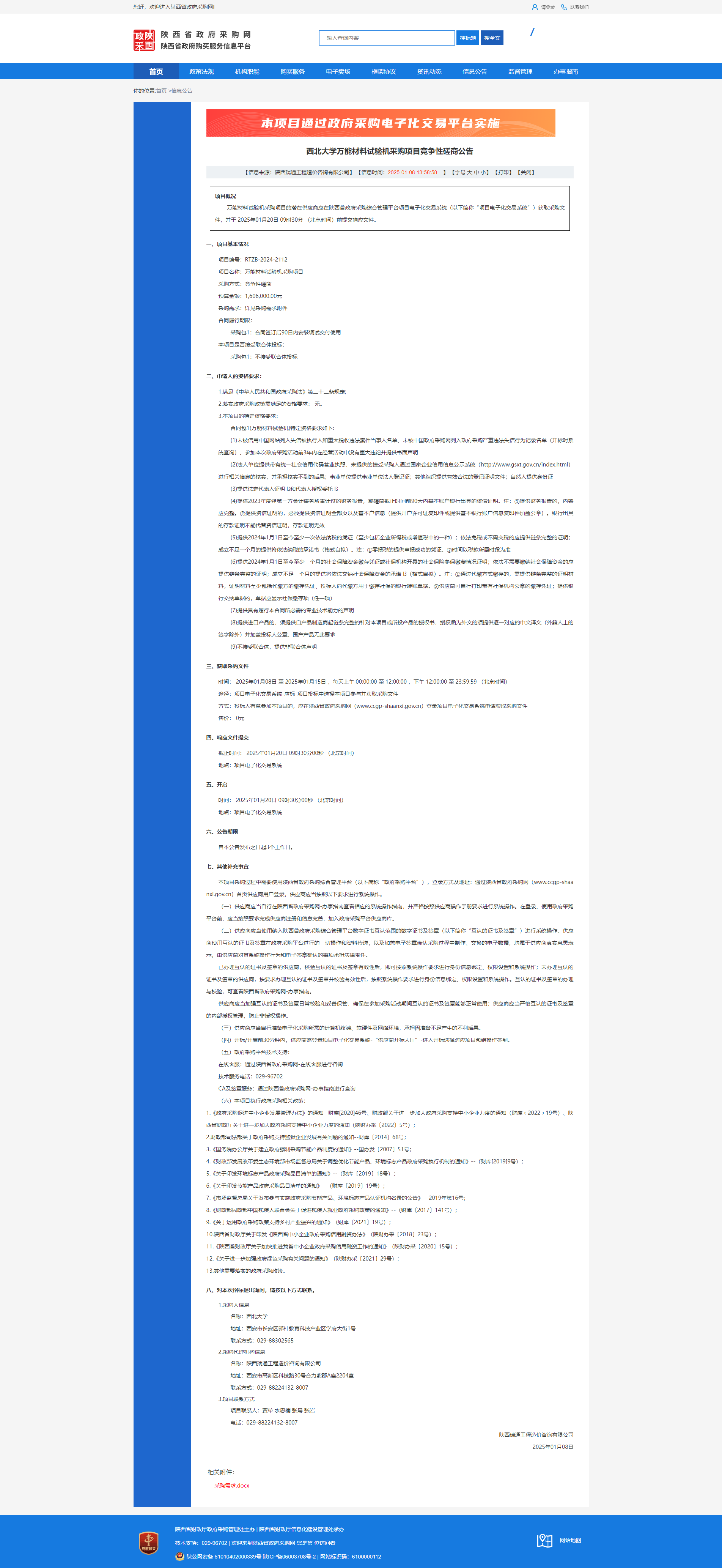 8868体育登录万能材料试验机采购项目竞争性磋商公告