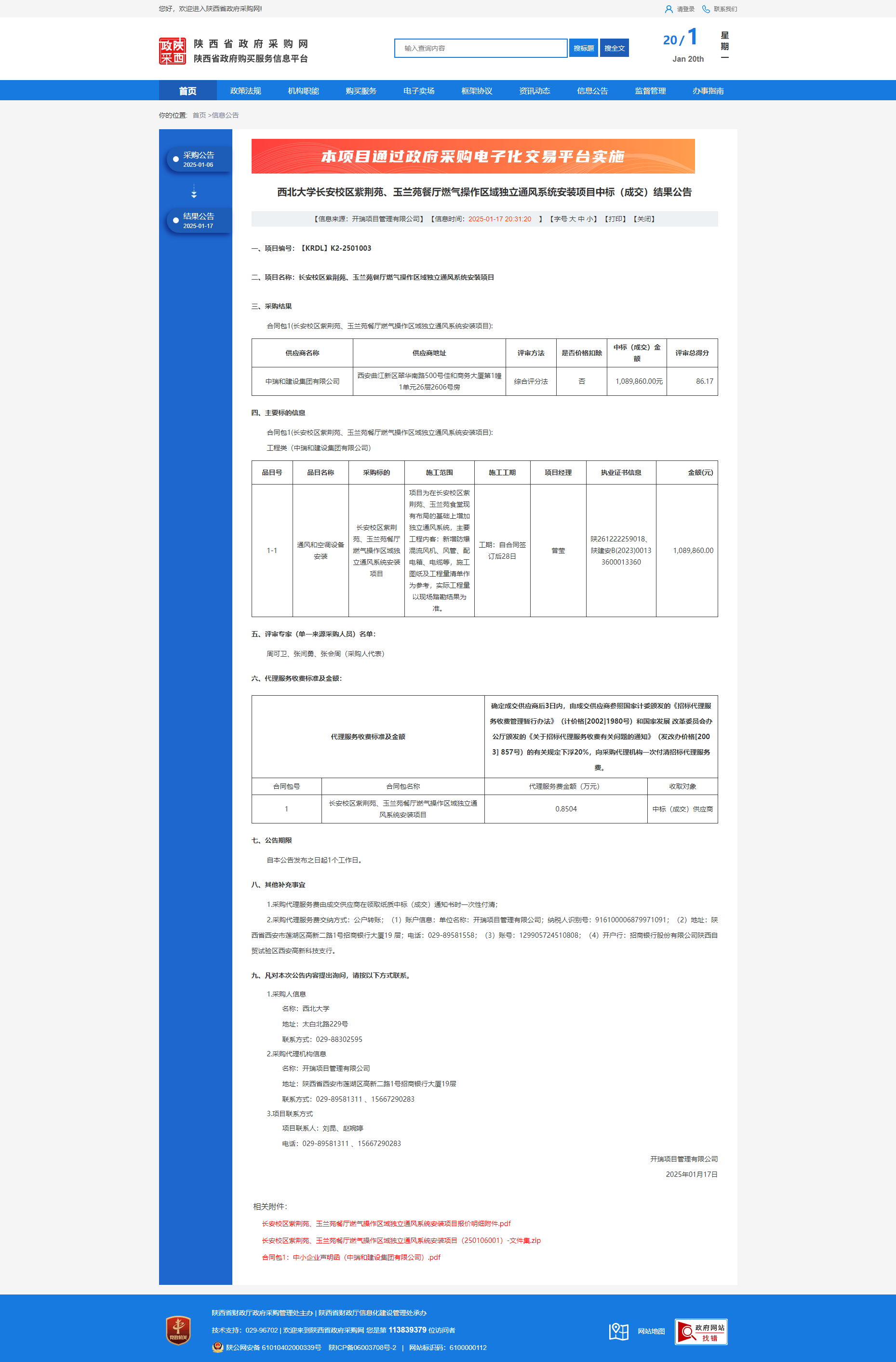 8868体育登录长安校区紫荆苑、玉兰苑餐厅燃气操作区域独立通风系统安装项目中标(成交)结果公告