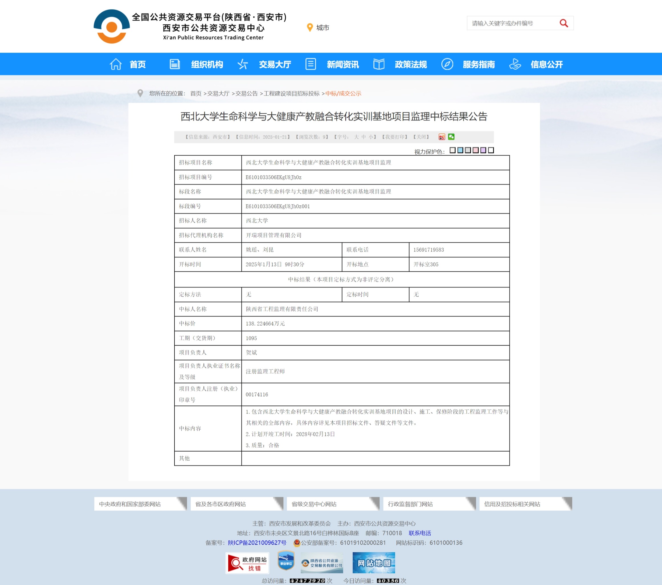 8868体育登录生命科学与大健康产教融合转化实训基地项目监理中标结果公告