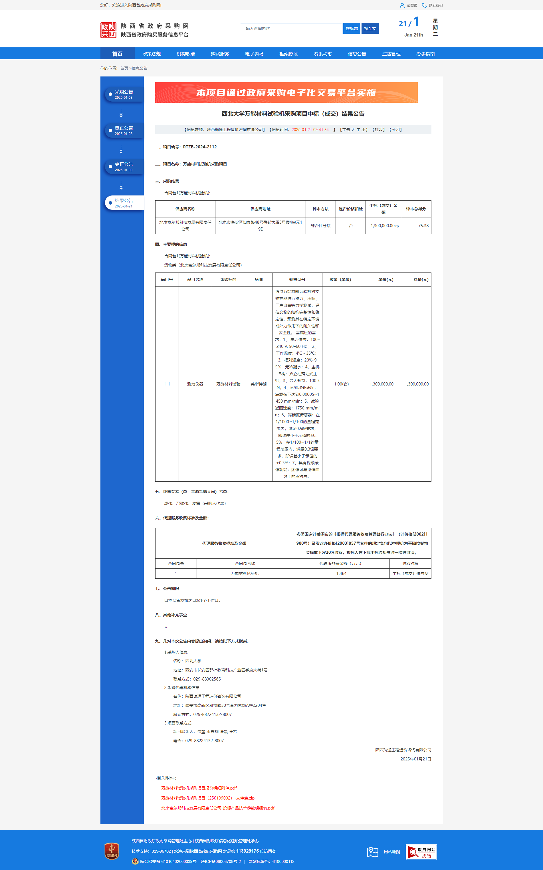 8868体育登录万能材料试验机采购项目中标(成交)结果公告