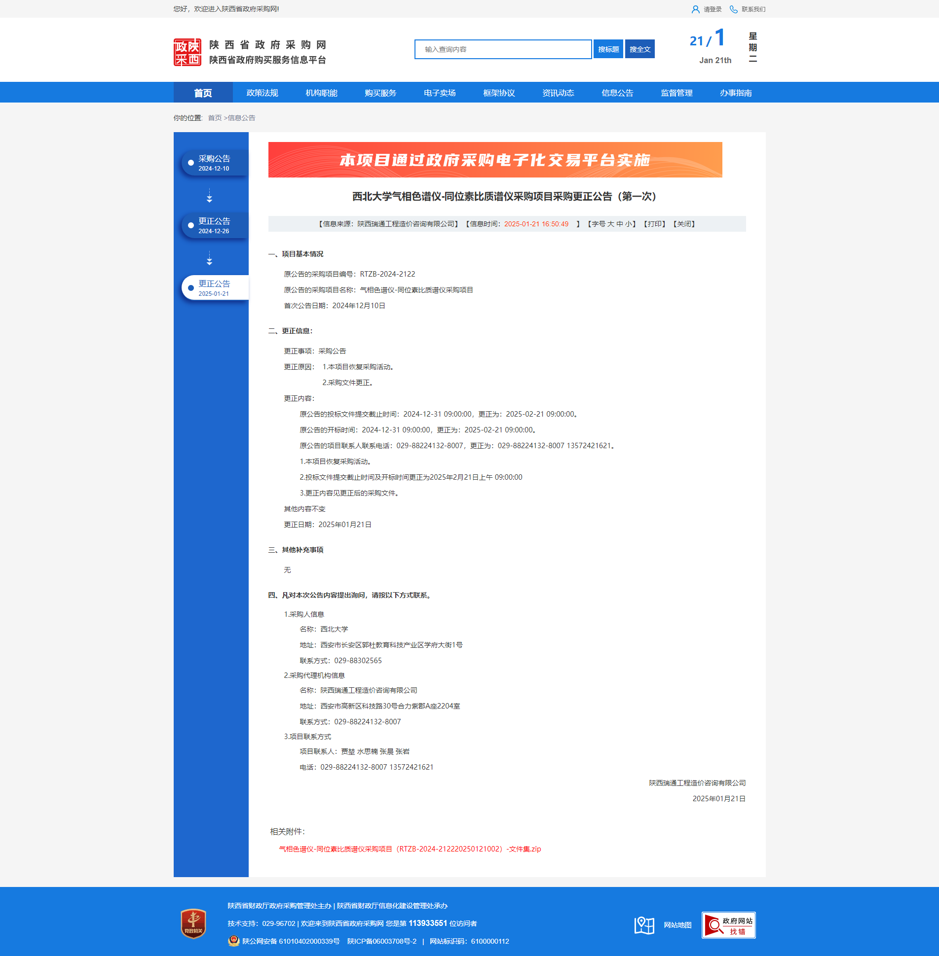 8868体育登录气相色谱仪-同位素比质谱仪采购项目采购更正公告(第一次)