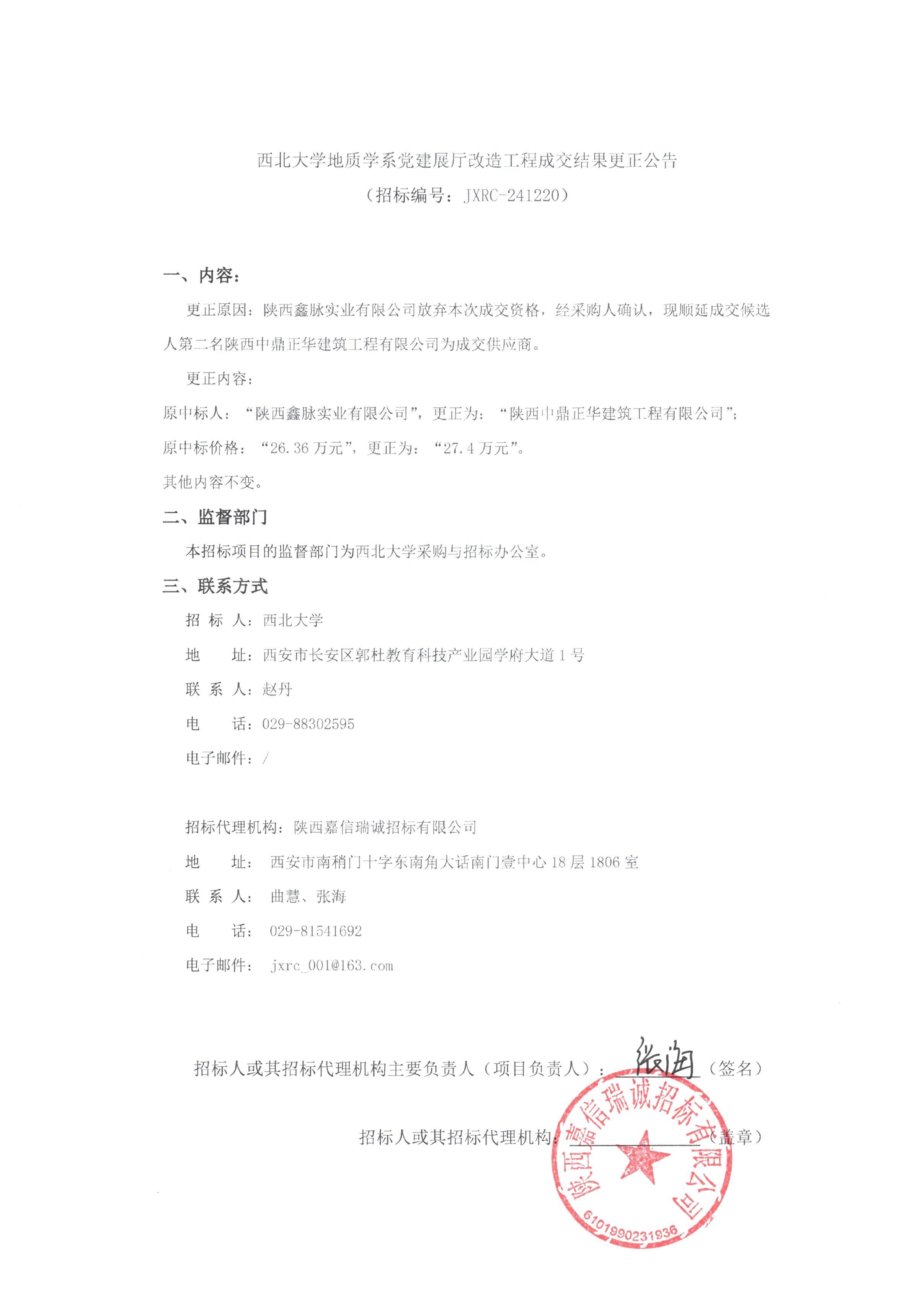 8868体育登录地质学系党建展厅改造工程成交结果更正公告