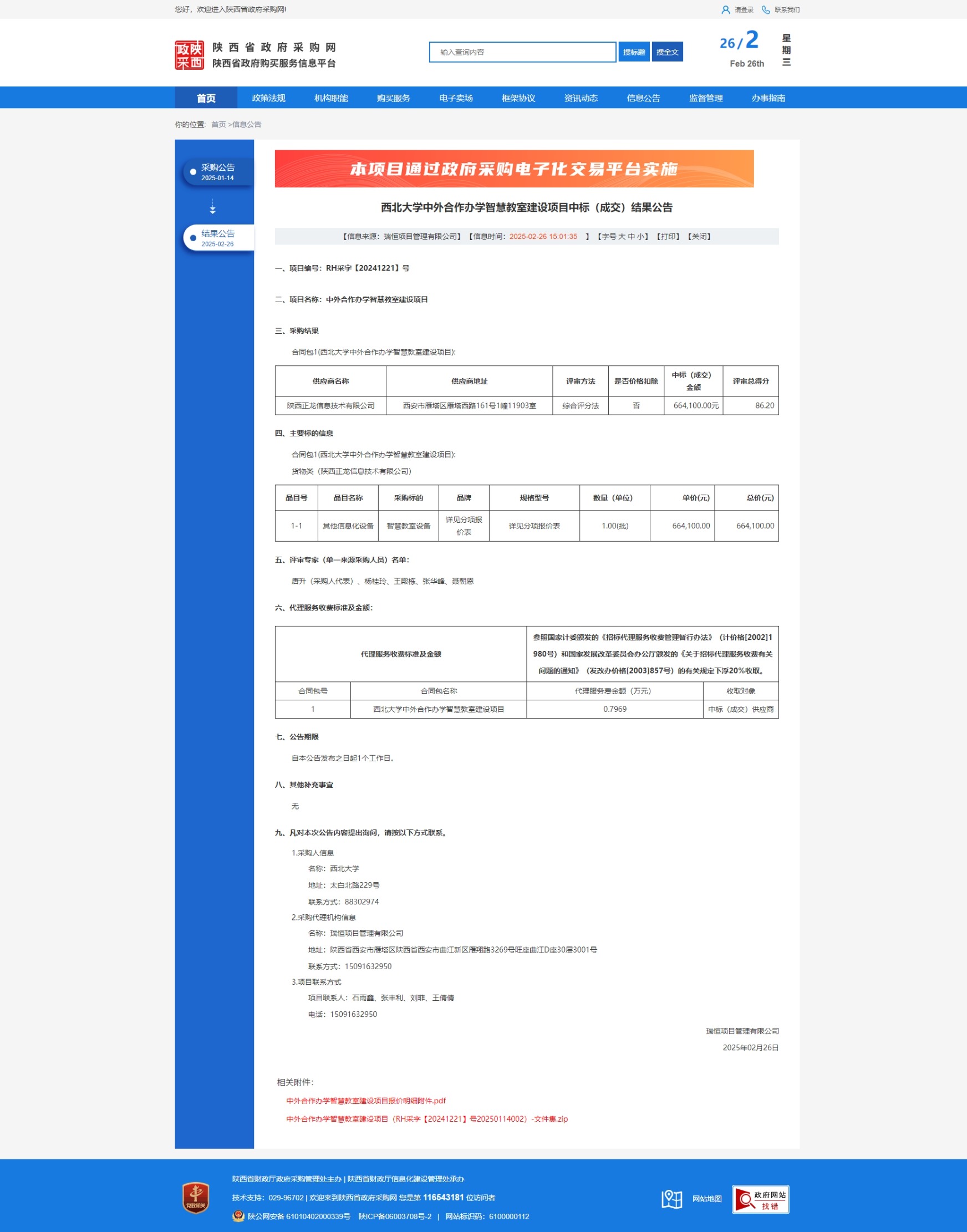 8868体育登录中外合作办学智慧教室建设项目中标(成交)结果公告 作者: 编辑:采购与招标办公室 时间:2025-02-26 原公告链接:https://www.ccgp-shaanxi.gov.cn/freecms/site/shaanxi/ggxx/info/2025/8a69c07394fffbb3019540f217e8256e.html?noticeType=001021¬iceId=47d2d283-f411-11ef-8063-08c0eb20c666