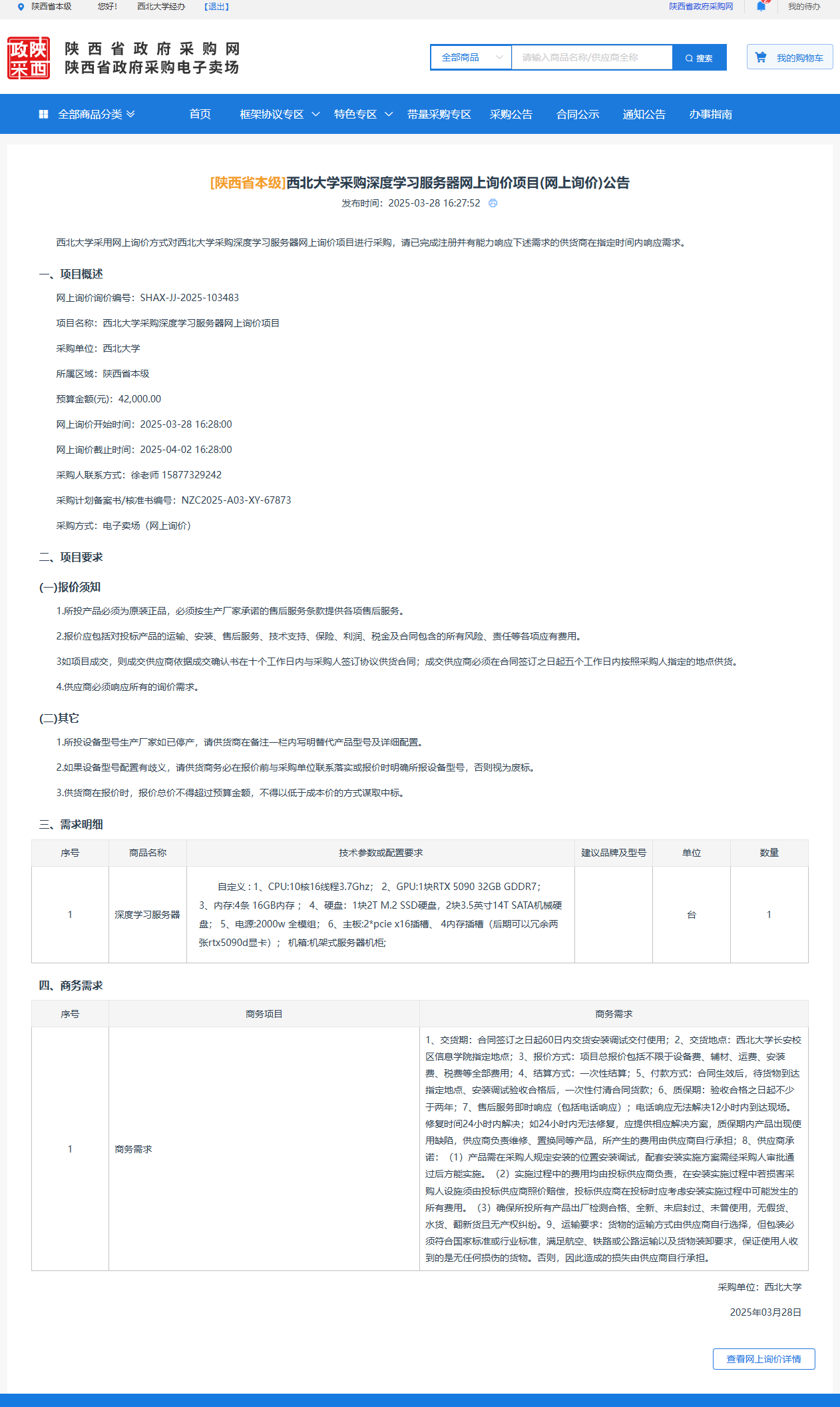 8868体育登录采购深度学习服务器网上询价项目(网上询价)公告 作者:采购与招标办公室 编辑: 时间:2025-03-28 原公告链接:https://www.ccgp-shaanxi.gov.cn/gpmall-main-web/basic/noticeDetail?noticeGuid=7304685071385165824