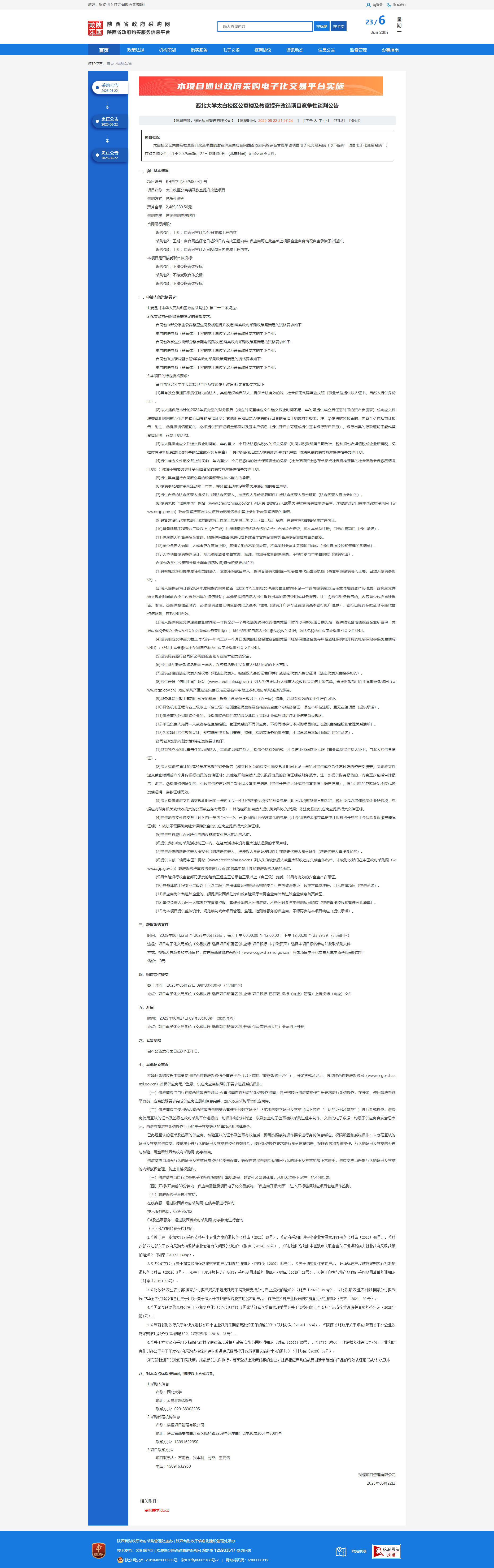 8868体育登录太白校区公寓楼及教室提升改造项目竞争性谈判公告
