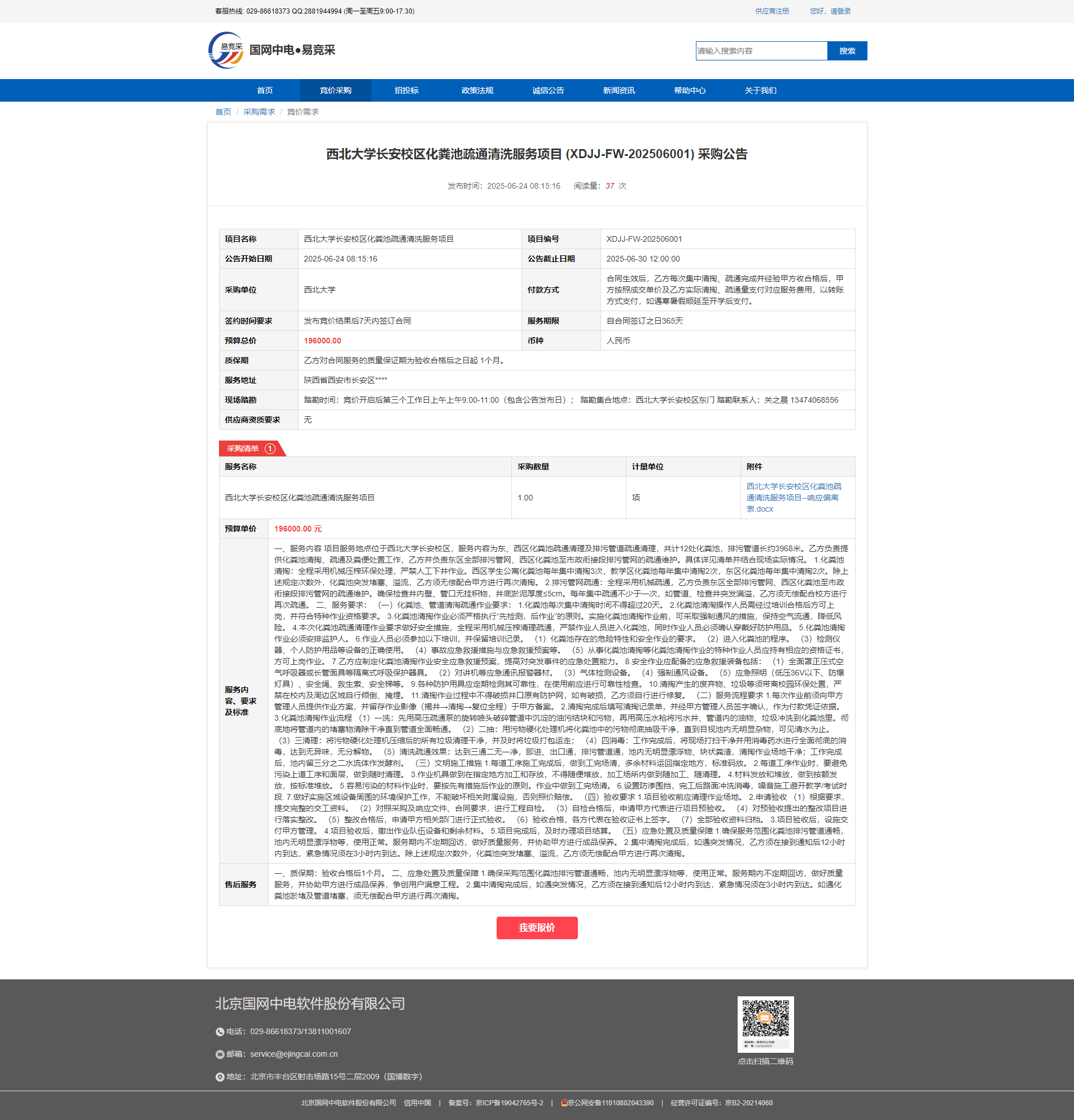 8868体育登录长安校区化粪池疏通清洗服务项目 (XDJJ-FW-202506001) 采购公告